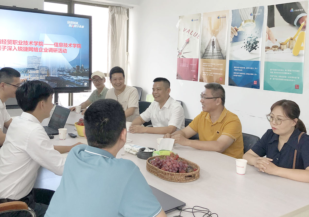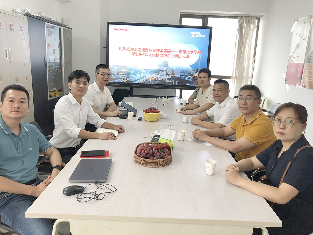 2023年5月26日,由信息技术公司党总支书记符胜带队赴公司合作企业锐捷网络股份有限公司(海口公司)和浙江大华技术股份有限公司(海口公司)开展主题教育调研。本次调研受到公司热烈欢迎,并派出代表与公司就双方就产学合作发展等方面交换意见,双方代表进一步探讨了合作模式,就未来项目合作、实习实训、人才培养、课程共建等内容进行了深度交流。符胜书记表示通过本次调研走访进一步强化校企衔接、深化校企合作,校企双方共同发挥各自优势,对接自贸港经济社会发展战略,携手培养高质量的信息化应用型职业人才,服务海南自贸港建设。