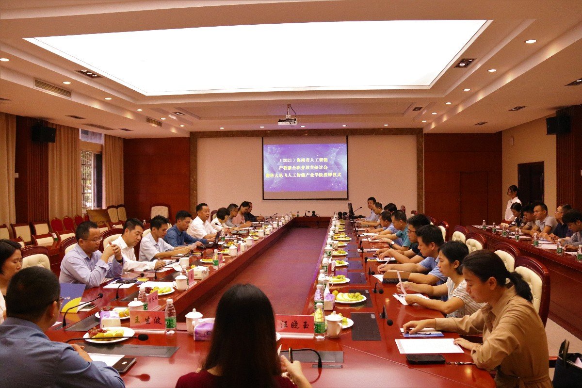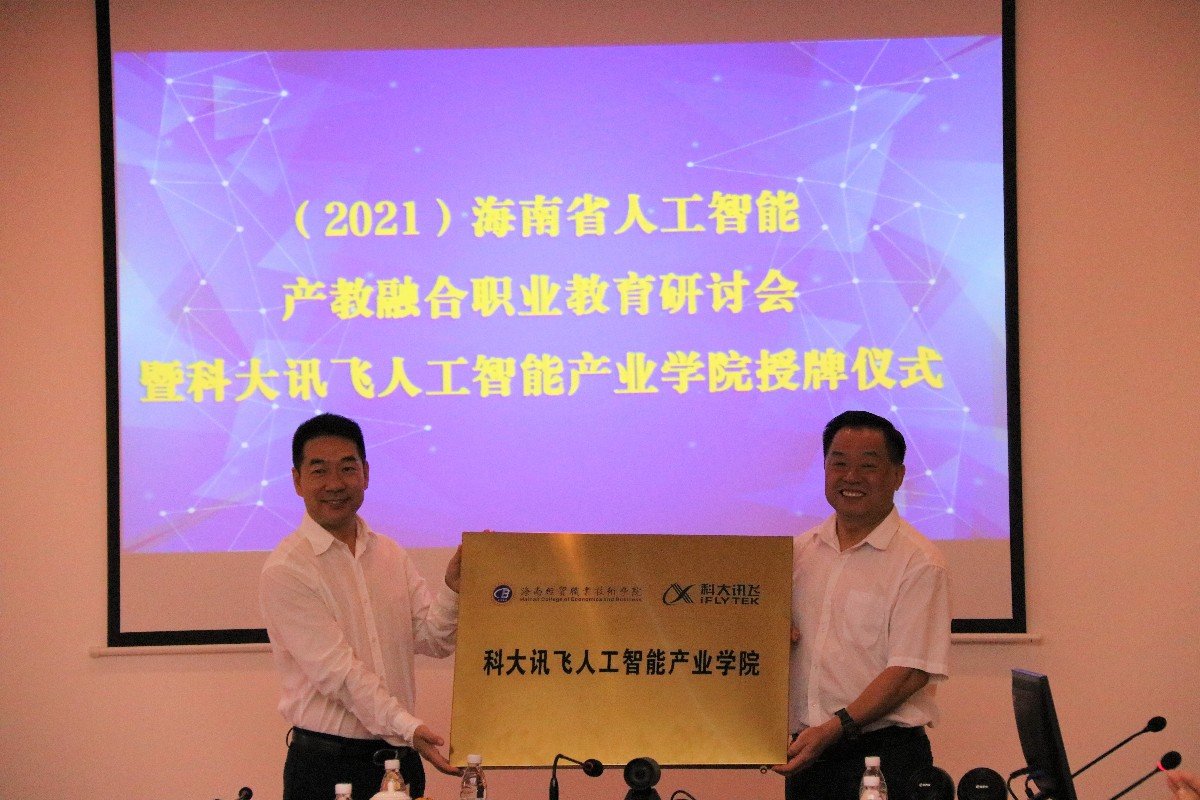 2021年11月2日,海南省人工智能产教融合职业教育研讨会暨“海南经贸-科大讯飞-人工智能产业公司”授牌仪式在海经贸举行。会议由太阳成集团tyc151cc、海南省人工智能学会、科大讯飞股份有限公司联合主办,海南科技职业大学、海口经济公司、海南软件职业技术公司协办。