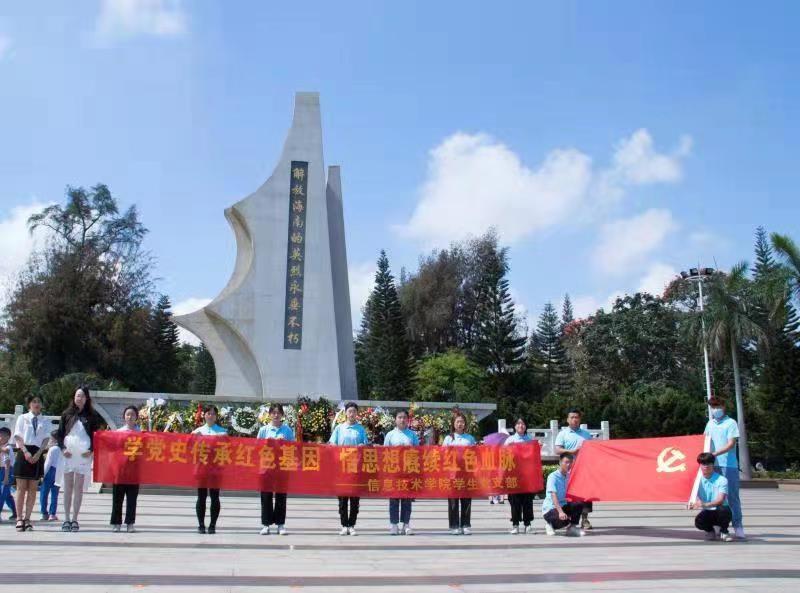 4月4日(青年媒体中心 陈佳慧报道)讯,为缅怀革命先烈,弘扬爱国主义精神。上午10点,太阳成集团tyc151cc员工党支部书记代晓明老师和郭蓉佳老师带领员工代表前往解放海南岛战役烈士陵园,开展“学党史传承红色基因,悟思想赓续红色血脉” 清明节烈士陵园扫墓活动。