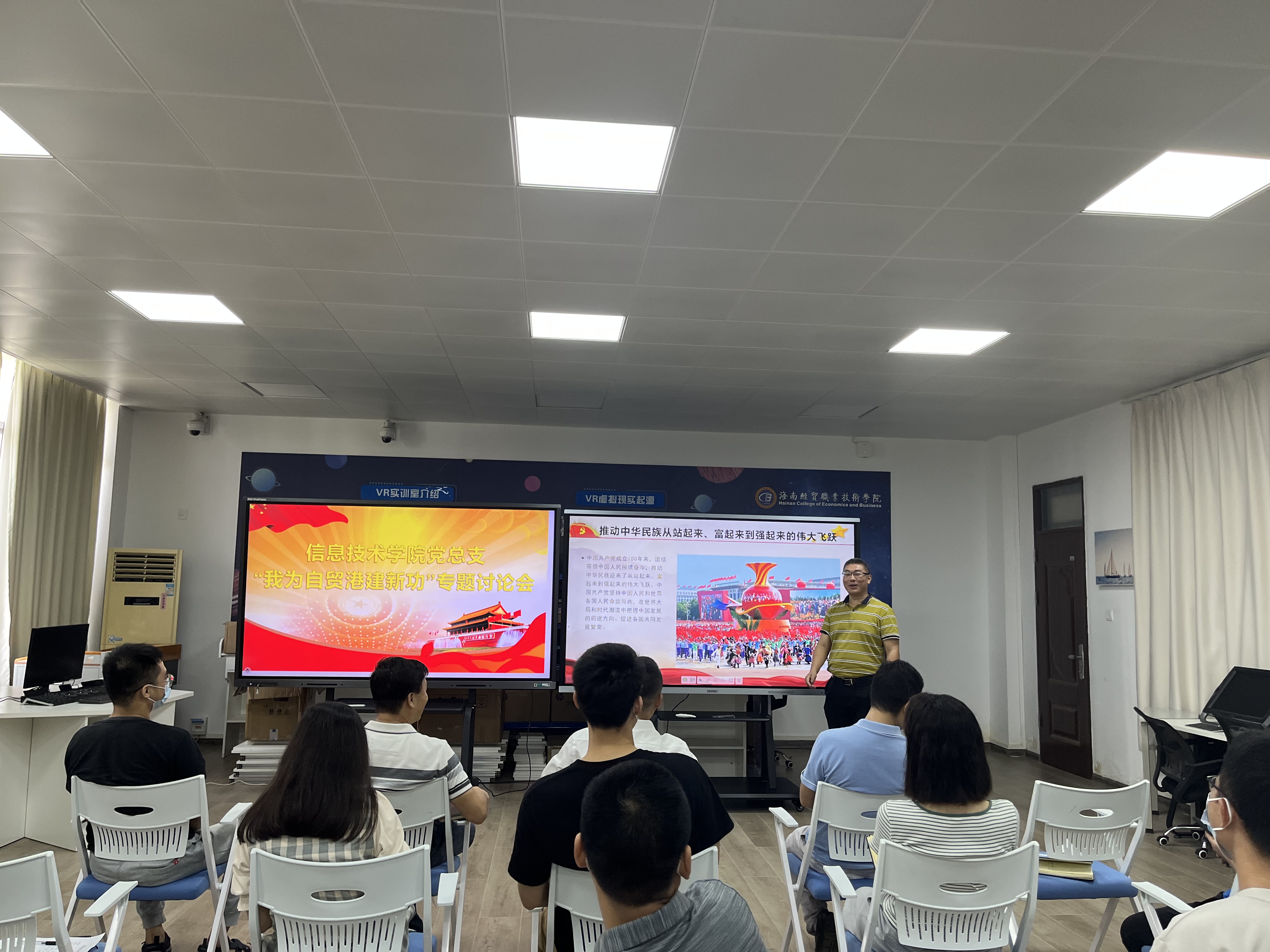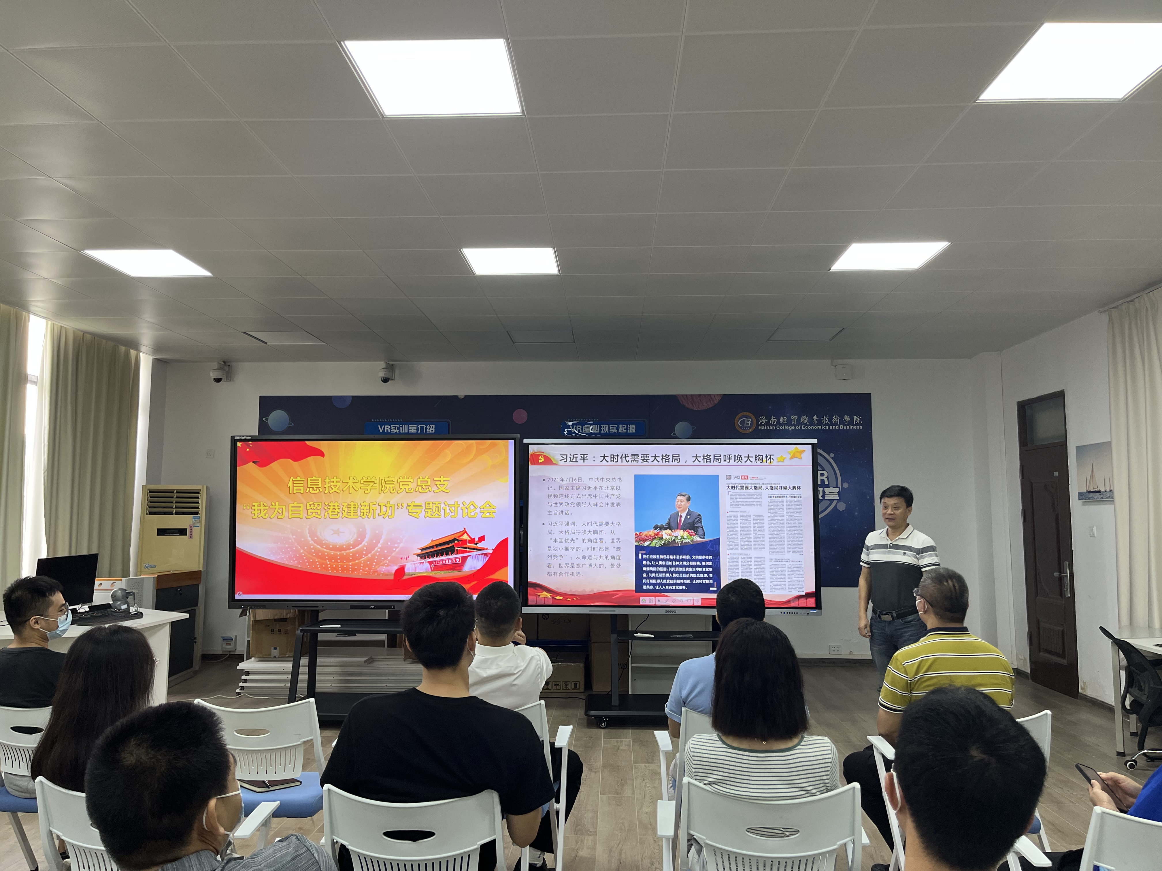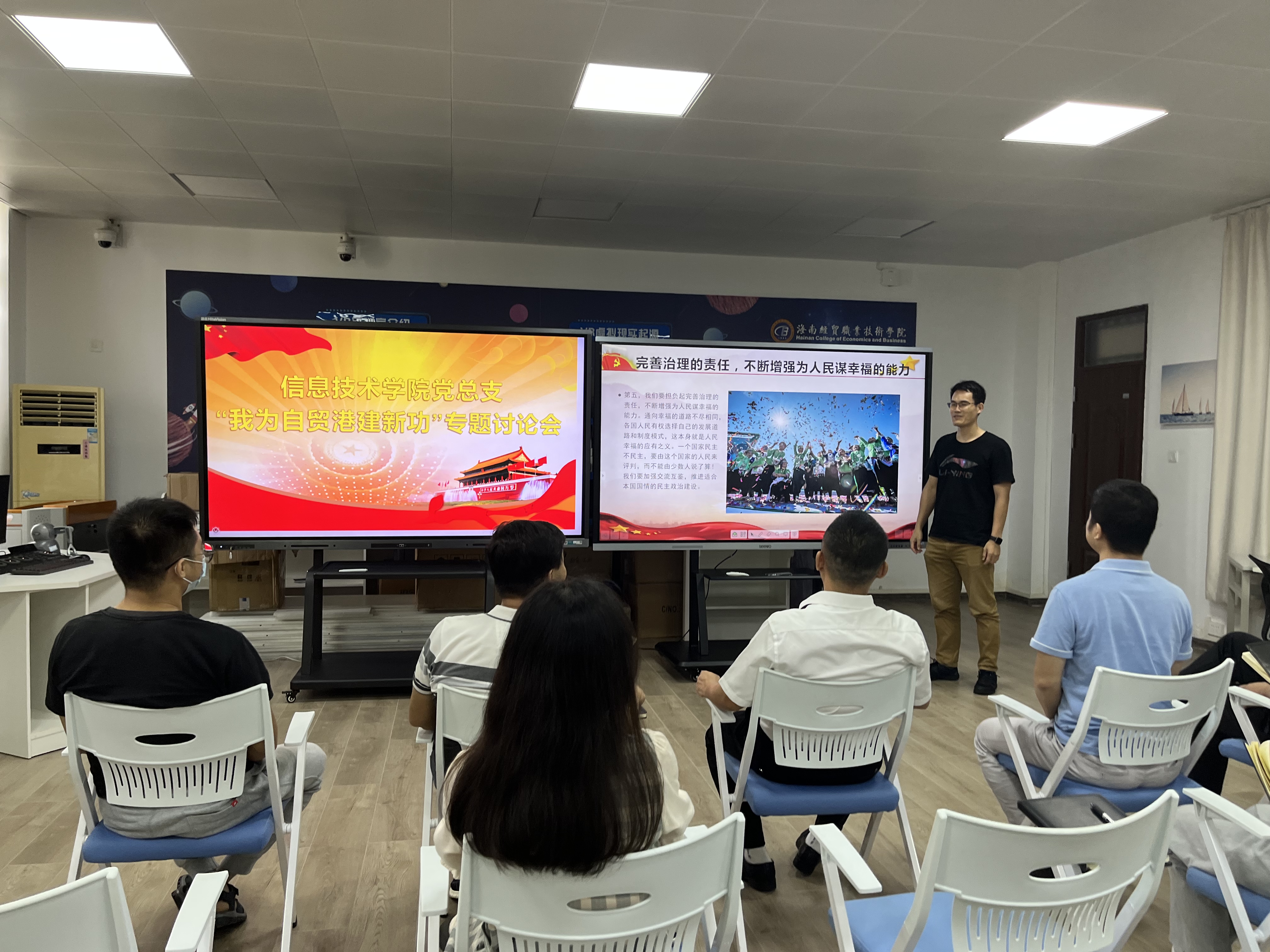5月16日,信息技术公司党总支在4-401召开“我为自贸港建新功”讨论会,会议由党总支书记符胜主持,太阳成集团tyc151cc全体教工党员参加了会议。