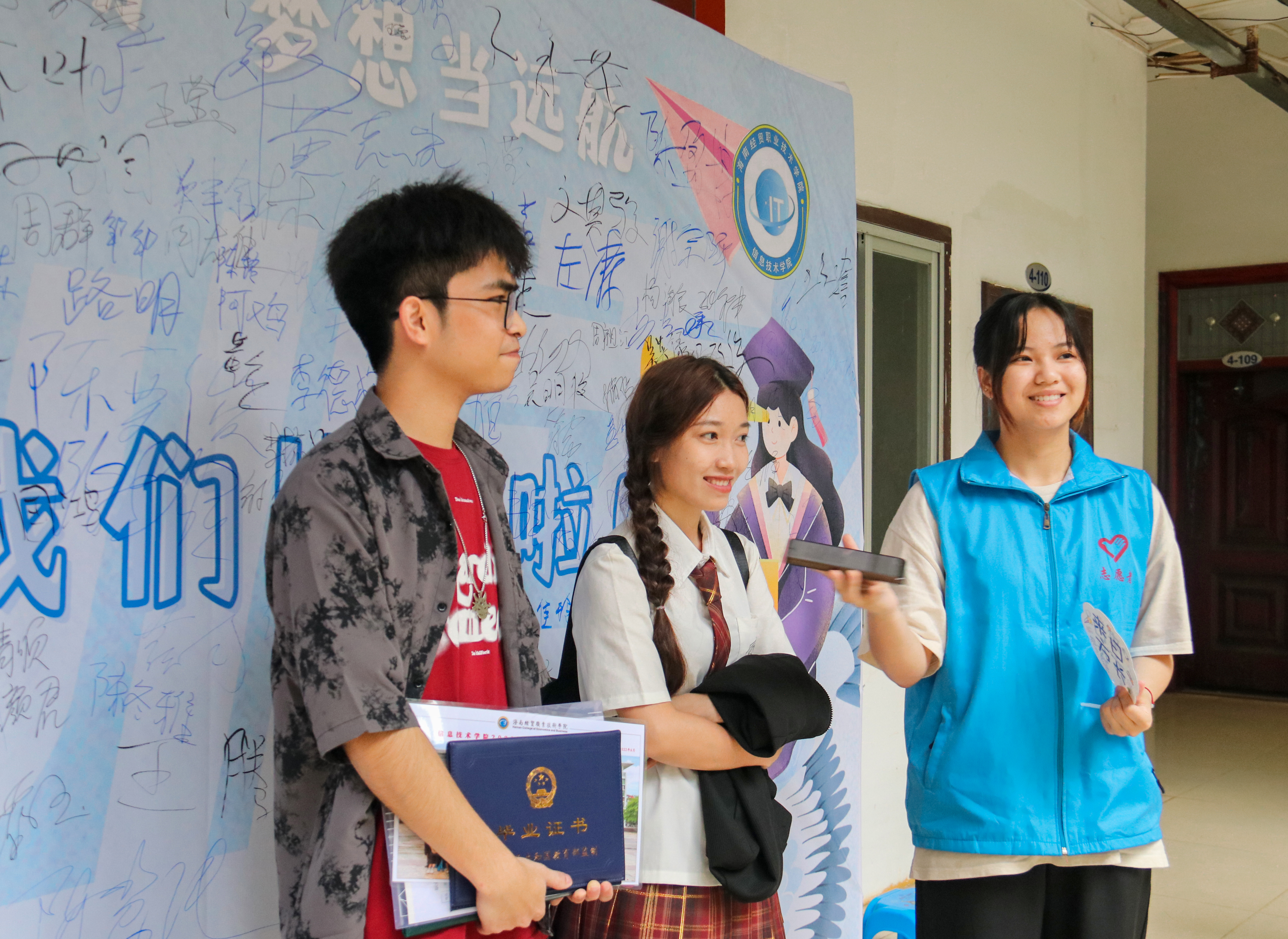 咔嚓,按下快门的瞬间,2023届毕业生毕业啦!在树影婆娑,蝉鸣聒噪的夏日里,毕业生们于6月15日再一次踏入校园,带着愉快的心情,迈着轻快的步伐,回首校园的一砖一瓦、一草一木,回顾曾经的欢声笑语、 酸甜苦辣。