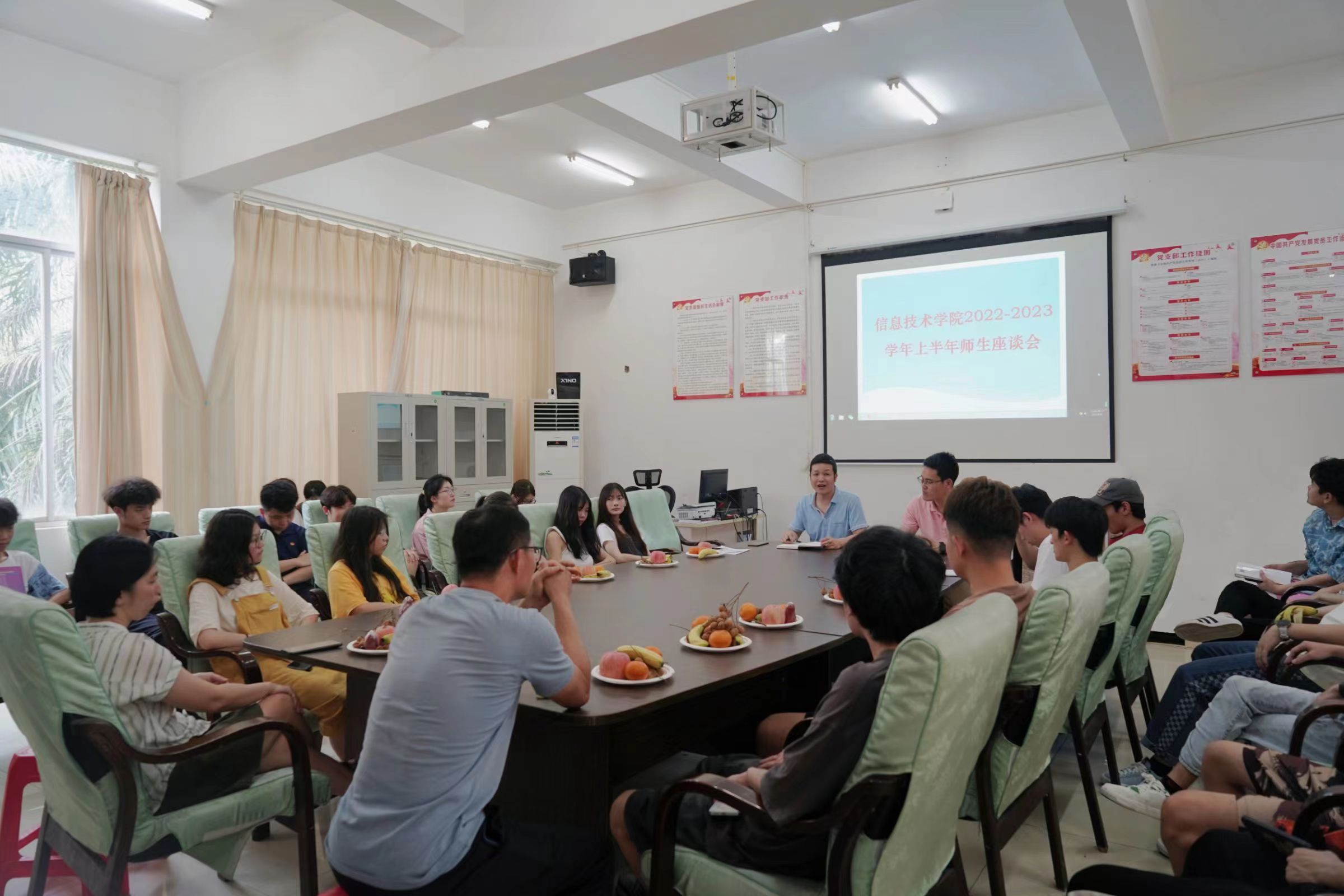 为进一步深入了解员工在思想、学习和生活等方面的情况,倾听员工之所想,聆听员工之所难,太阳成集团tyc151cc于4月4日上午十点在4-213召开师生座谈会。信息技术公司党总支副书记黄守官,副经理康东,学工办负责人唐图以及相关老师和各班代表出席会议。