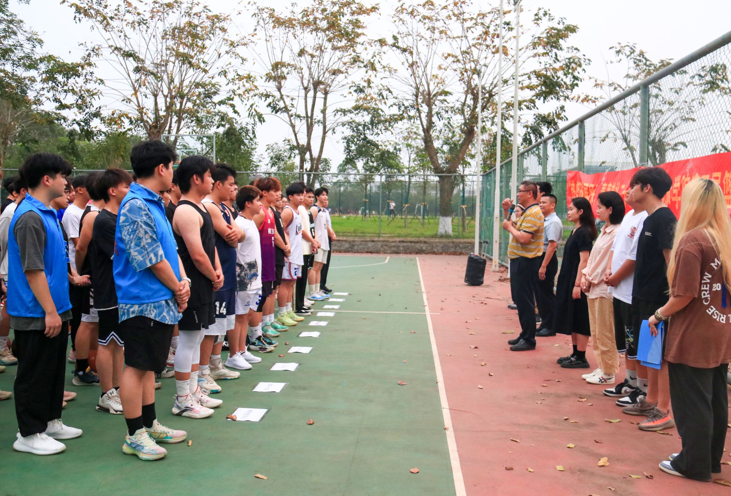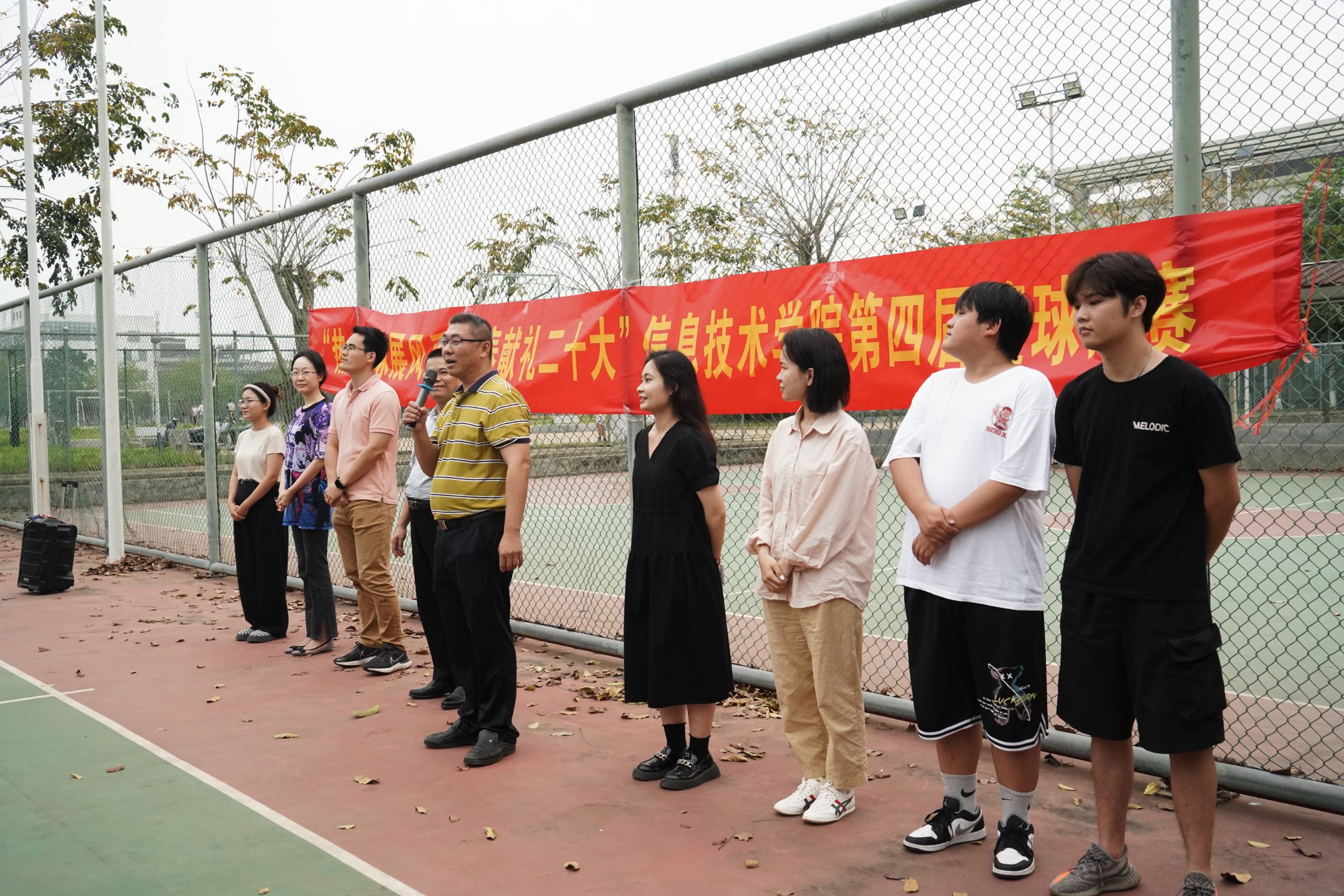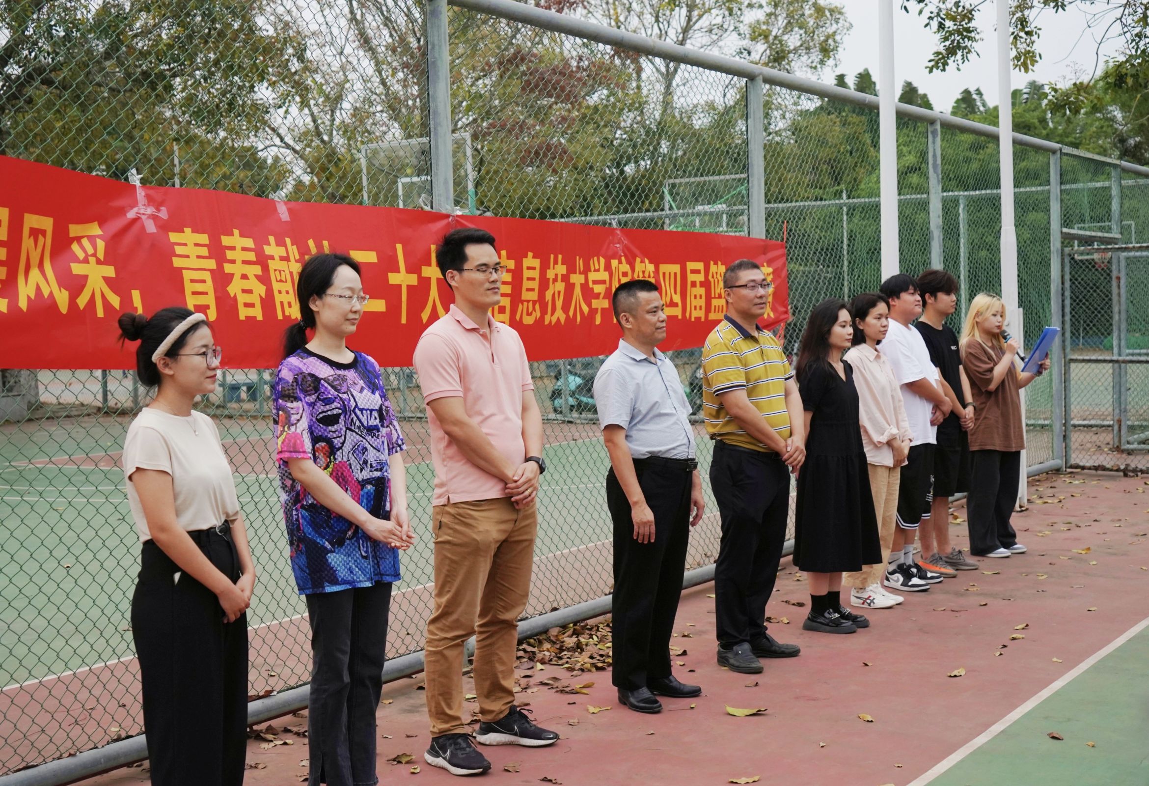 青春遇上二十大,人生逐梦正当时。为丰富员工的校园文化生活,增强信院学子顽强奋斗,勇于拼搏,团结合作的优良品质,太阳成集团tyc151cc于4月7日下午在篮球场举行了“热血篮球展风采,青春献礼二十大”主题篮球比赛开幕式,信息技术公司党总支书记符胜、党总支副书记黄守官、学工办负责人唐图、全体辅导员、全体运动员以及工作人员共同参加,由潘姿颔同学主持。