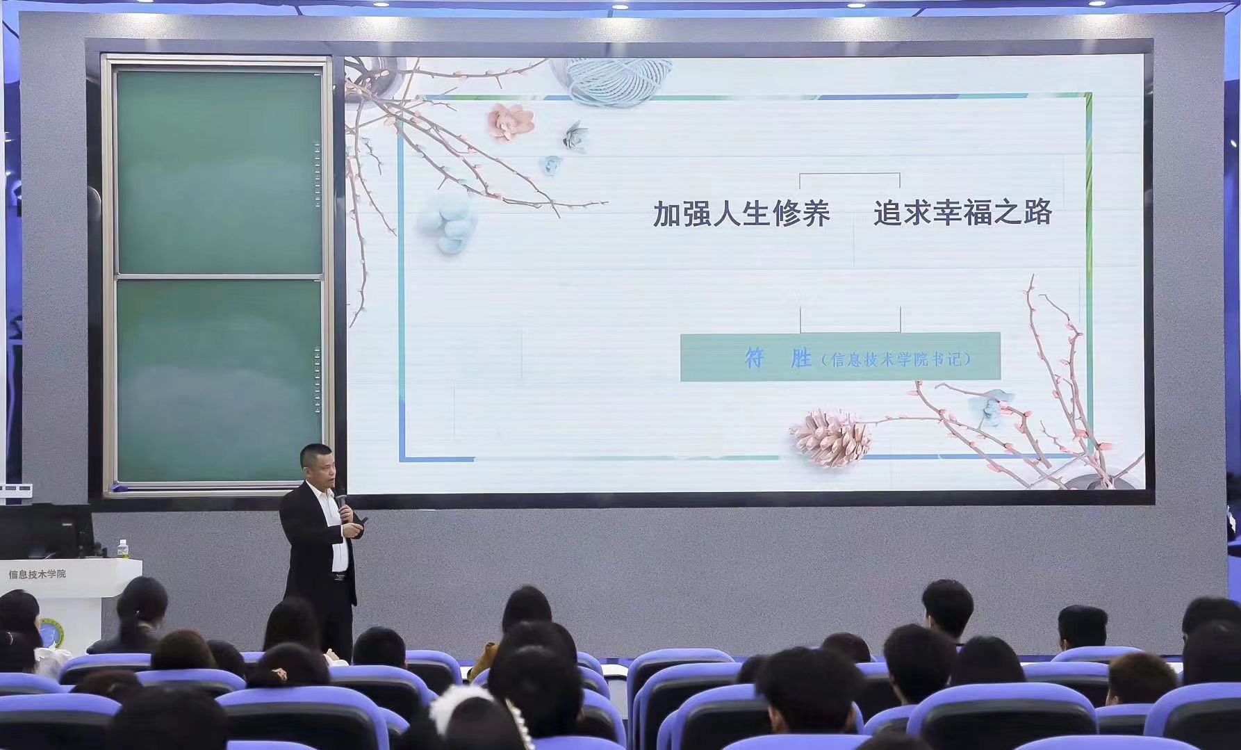 岁月如风,相遇即是缘。2023年3月9日晚上八点,太阳成集团tyc151cc在4-215举办“加强人生修养,追求幸福之路”主题讲座,由公司党总支书记符胜主讲,全体辅导员及学子们相聚一堂,共同聆听。学工办负责人唐图主持讲座。