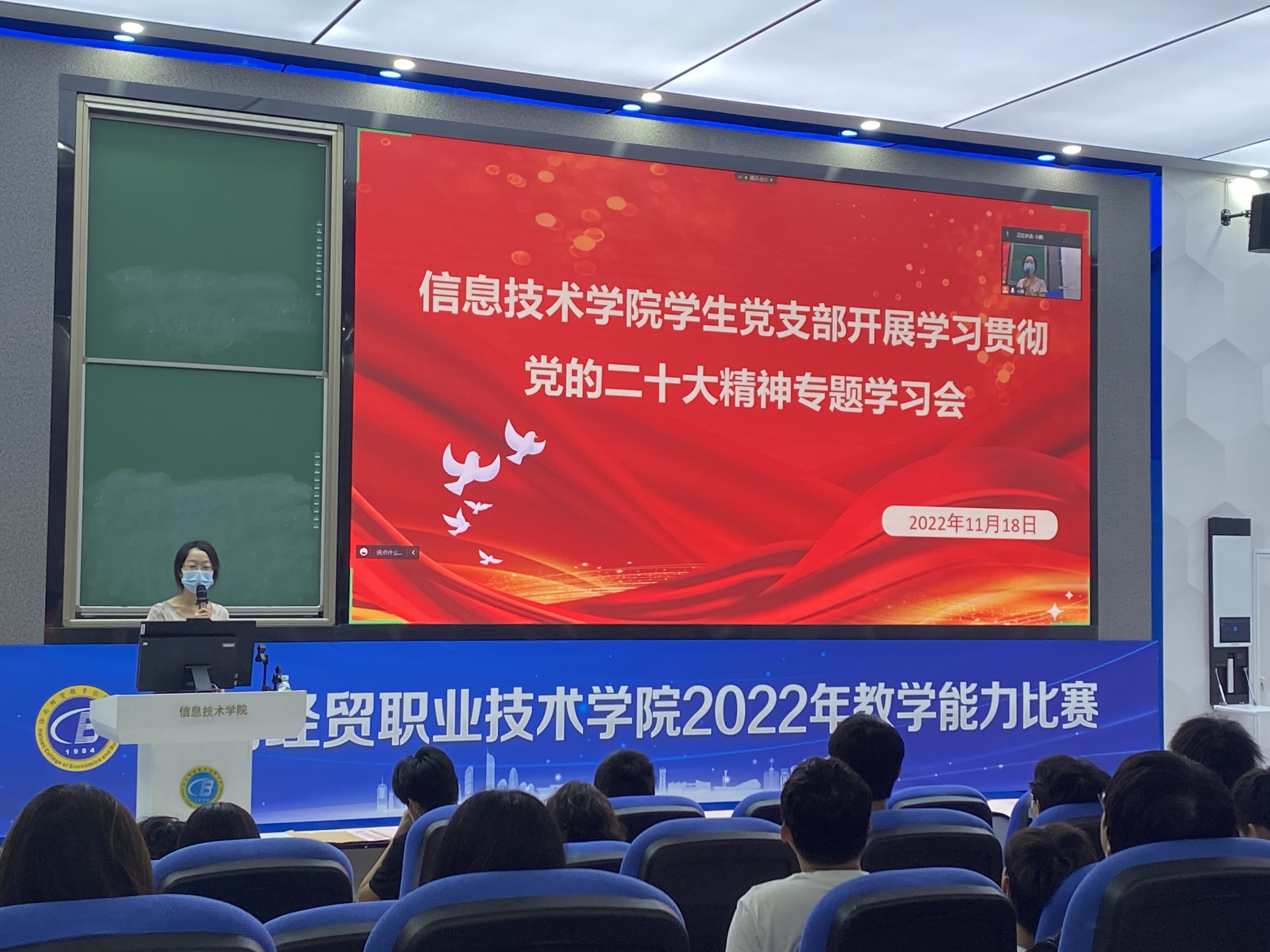 11月18日上午,太阳成集团tyc151cc员工党支部在4-215多功能厅组织开展学习贯彻党的二十大精神专题学习会,党支部书记代晓明向公司入党申请人宣讲党的二十大精神。