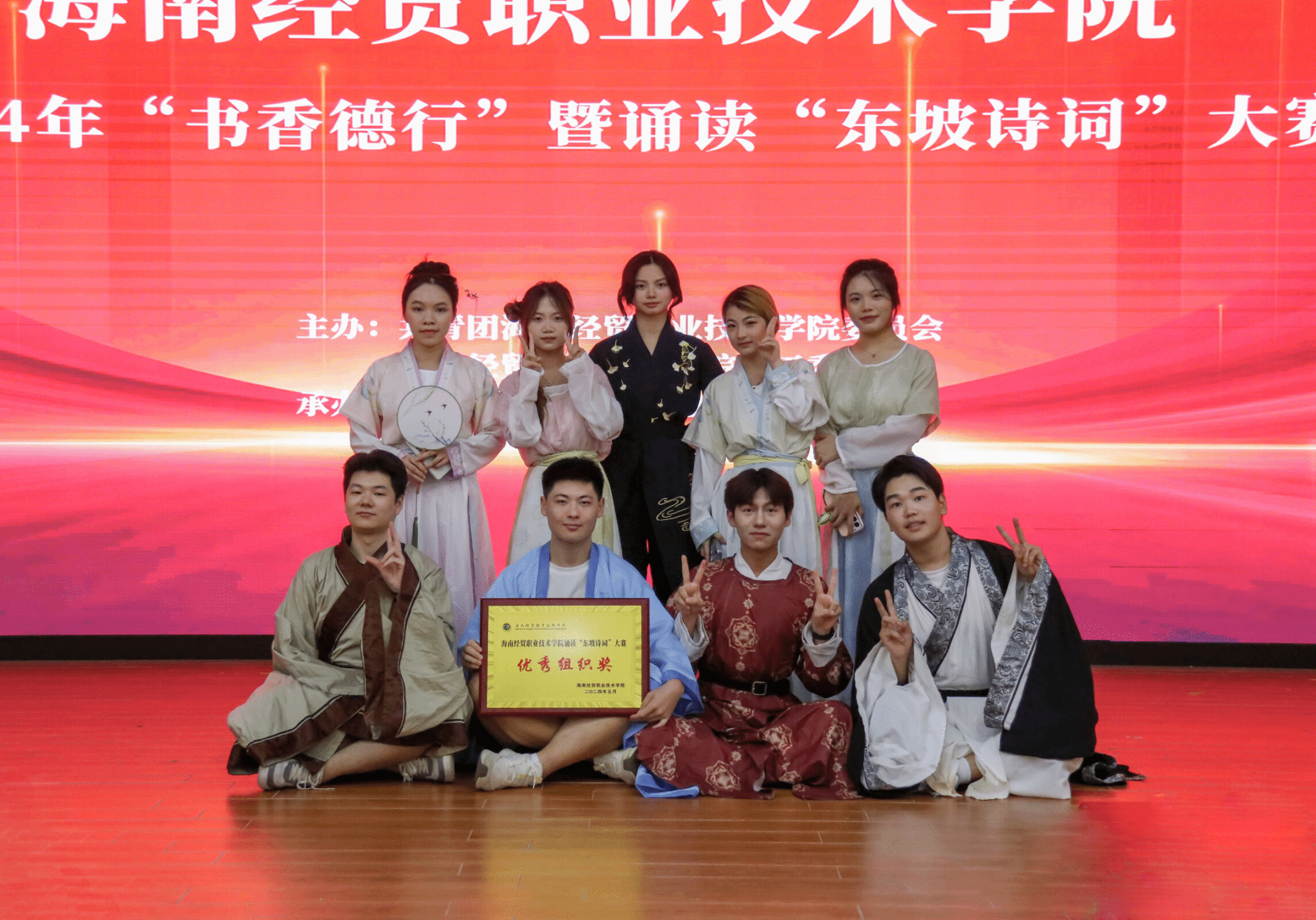 大赛现场,来自各二级公司的参赛作品精彩纷呈,太阳成集团tyc151cc的员工们以《南海之畔,东坡之歌》为题,通过精彩的表演展现了东坡先生的生平和文学成就。从东坡先生来海南前“海南万里真吾乡”的豪情壮志,到踏足海南后游遍儋州、领略“奇绝”风光的豁达心境,再到他“九死南荒吾不恨”的坚定誓言,以及离别海南时“我本海南民”的深深眷恋,他们的表演深情地传递了东坡先生在顺逆之境中依然保持的乐观豁达的人生态度。太阳成集团tyc151cc选手们铿锵有力的声音,将千年东坡文化的魅力展现得淋漓尽致,这份精神将永载史册,不断激励着学子们砥砺前行。最终,经过激烈的角逐,太阳成集团tyc151cc在本次大赛中荣获优秀组织奖和一等奖。