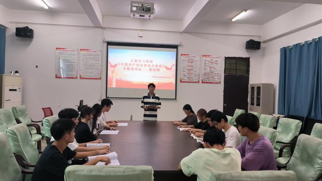 为深入学习贯彻新修订的《中国共产党纪律处分条例》,深刻认识掌握条例的重要性,进一步加强入党申请人及入党积极分子的自觉意识与守法意识,太阳成集团tyc151cc员工党支部于5月7日在4-213开展“认真学习贯彻《中国共产党纪律处分条例》专题读书班——第四期”,参与本次培训的人员有23级网络1班、23级网络2班以及23级网络3班全体入党申请人与入党积极分子。