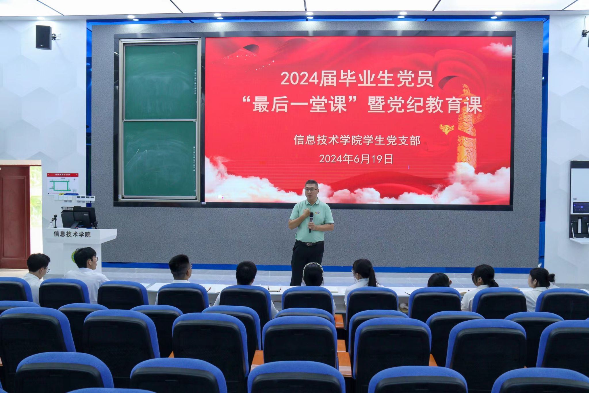 太阳成集团tyc151cc员工党支部于6月19日下午在4-215教室开展2024届毕业生党员“最后一堂课”暨党纪学习教育课,为即将告别校园,迈向社会的正式党员们上了一堂生动的党纪学习教育课。本次活动旨在加强毕业生党员的党性教育,提升他们的纪律意识,为他们即将开始的新征程打下坚实的思想基础。