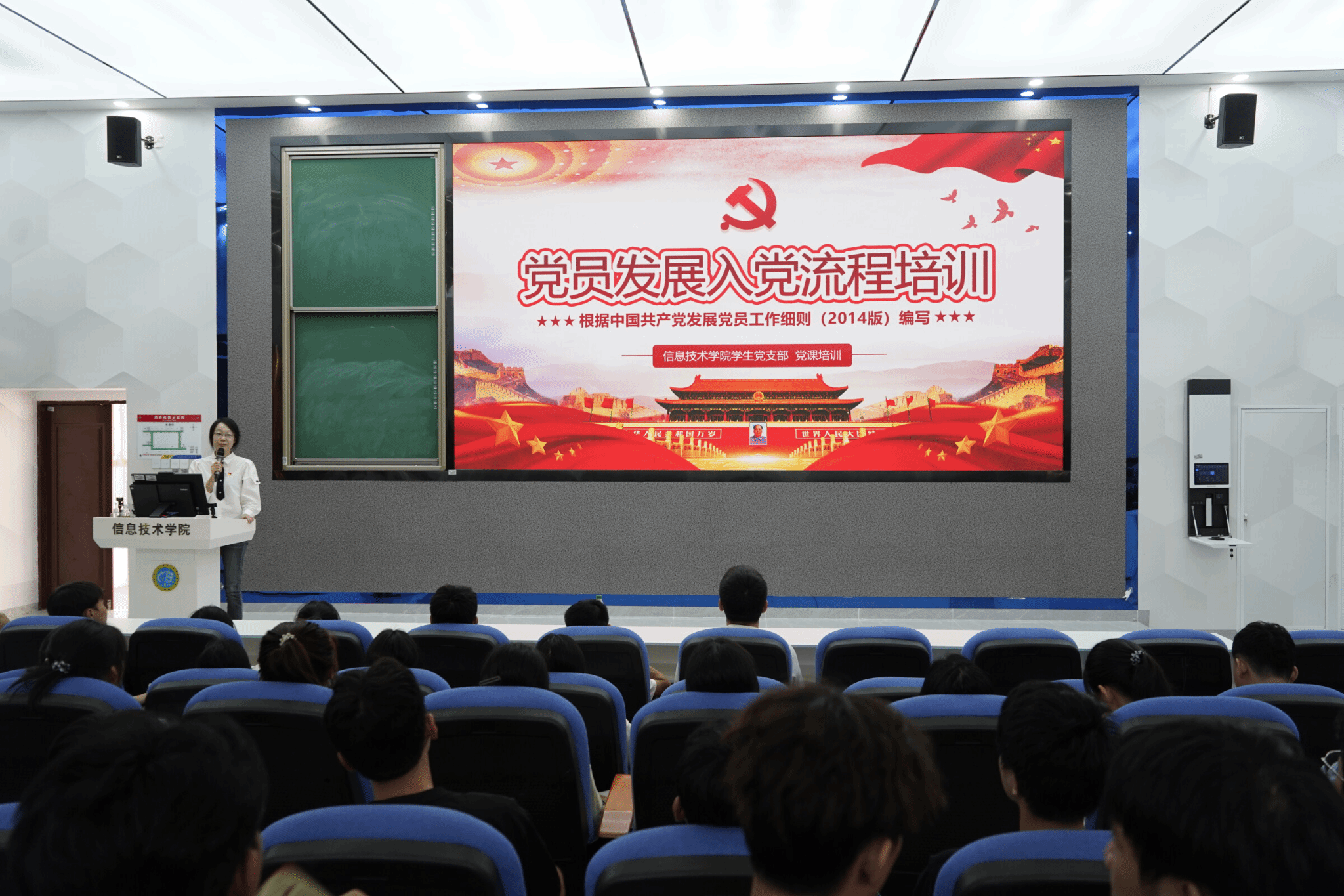 随后,代老师为新生们详细介绍了入党流程,鼓励他们严格要求自己,不断提升政治觉悟,并帮助新生端正入党动机,引导新生积极向党组织靠拢。