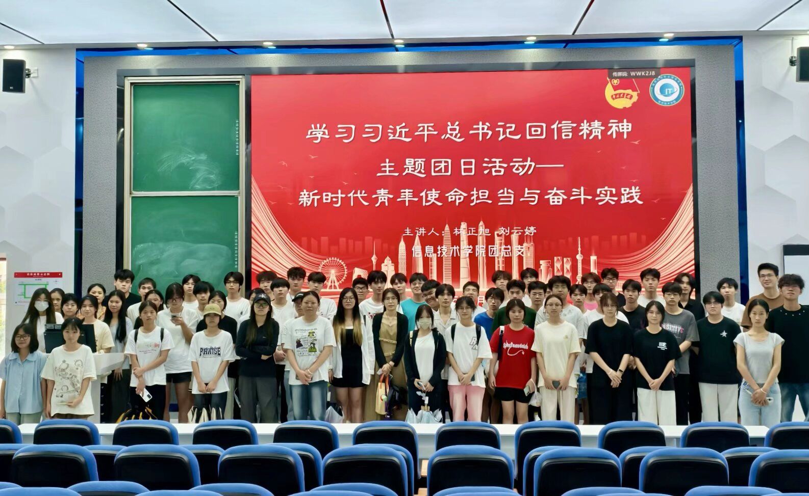 为深入学习贯彻习近平总书记重要回信精神,激励广大青年学子牢记使命,奋勇前行,5月22日,公司开展了学习习近平总书记回信精神主题团日活动。活动由刘云婷,林正旭主持,24人工1班团支部、24人工2班团支部全体同学共同参与。