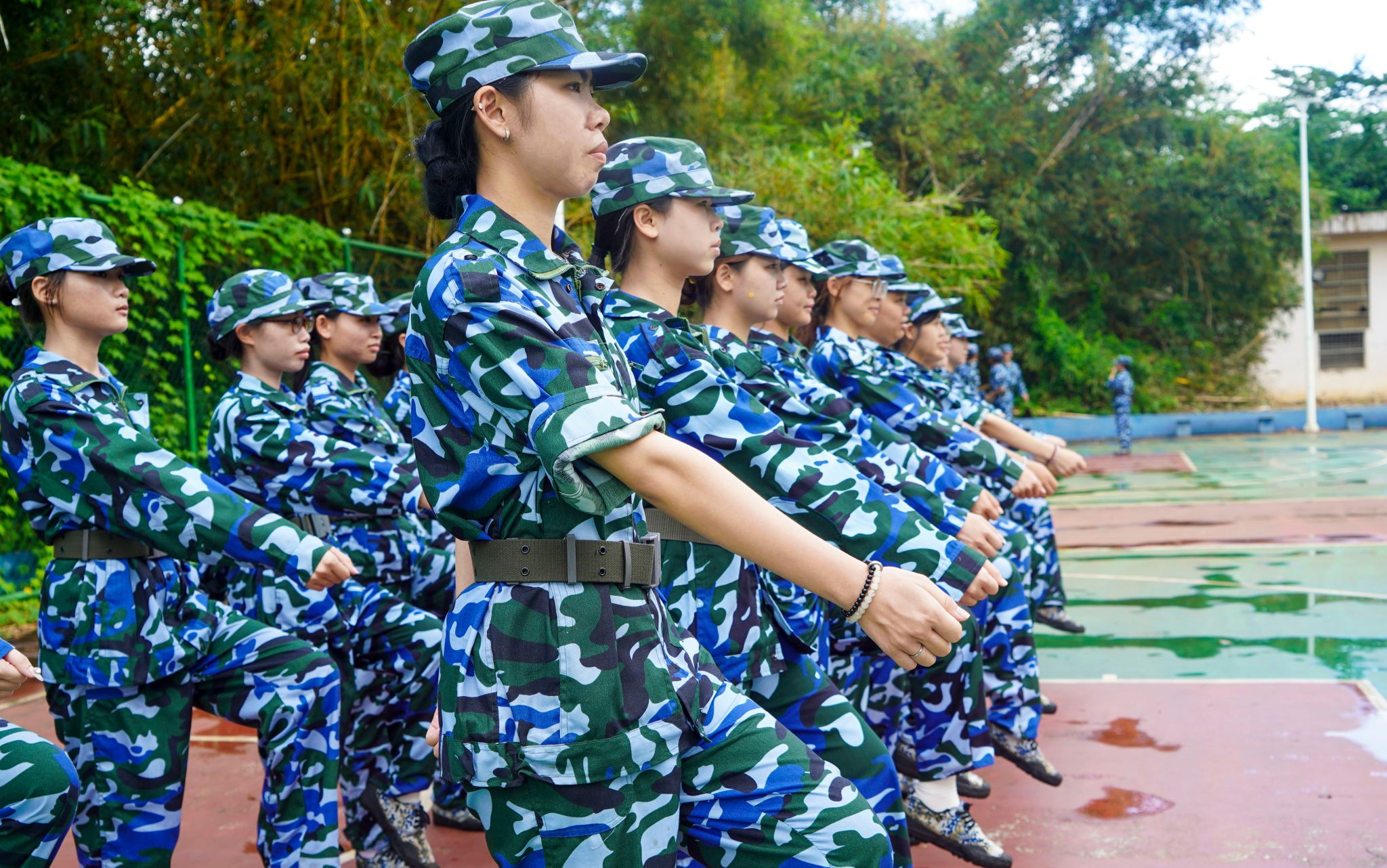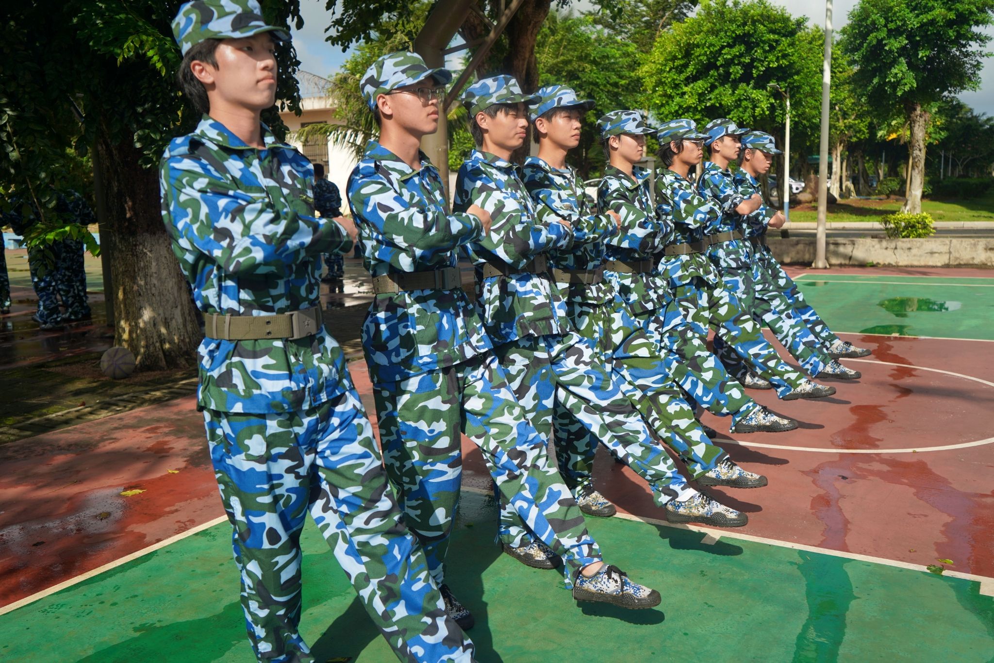 整齐的脚步声回荡在训练场,