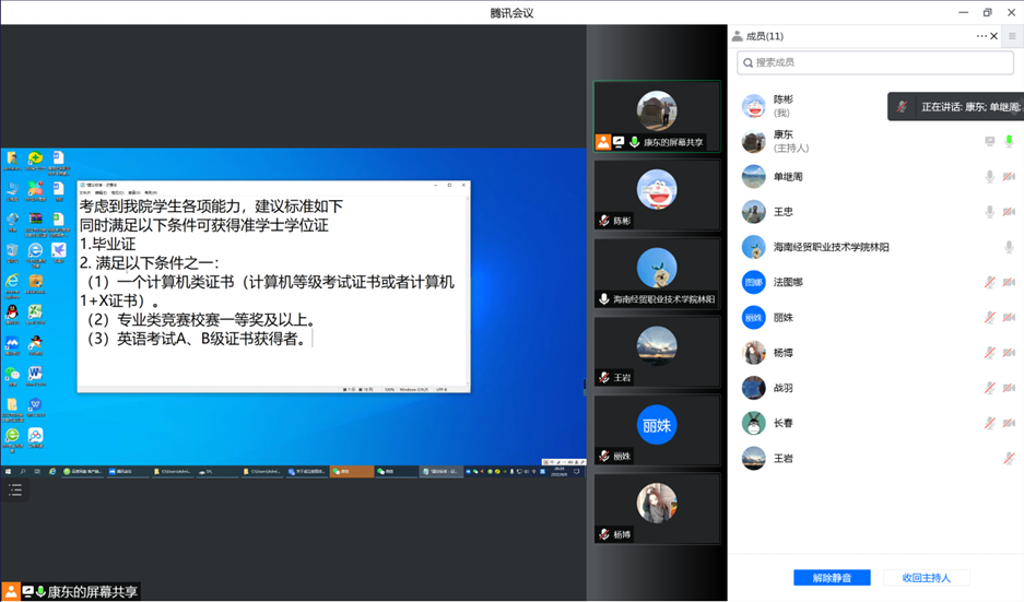 为明确公司毕业生获得准学士学位证条件,6月8日晚上,太阳成集团tyc151cc通过在线视频召开本年度第1次教学指导委员会会议,会议由康东副经理主持,王忠经理、单继周副经理及公司教学指导委员会成员参加了会议。