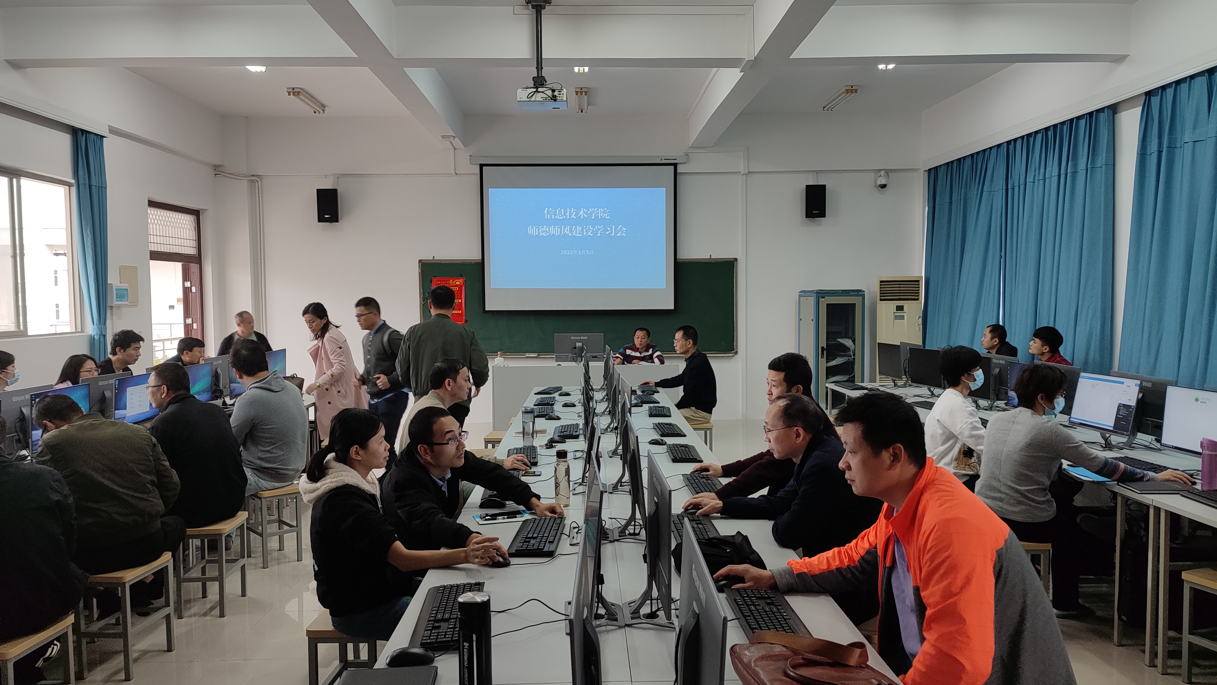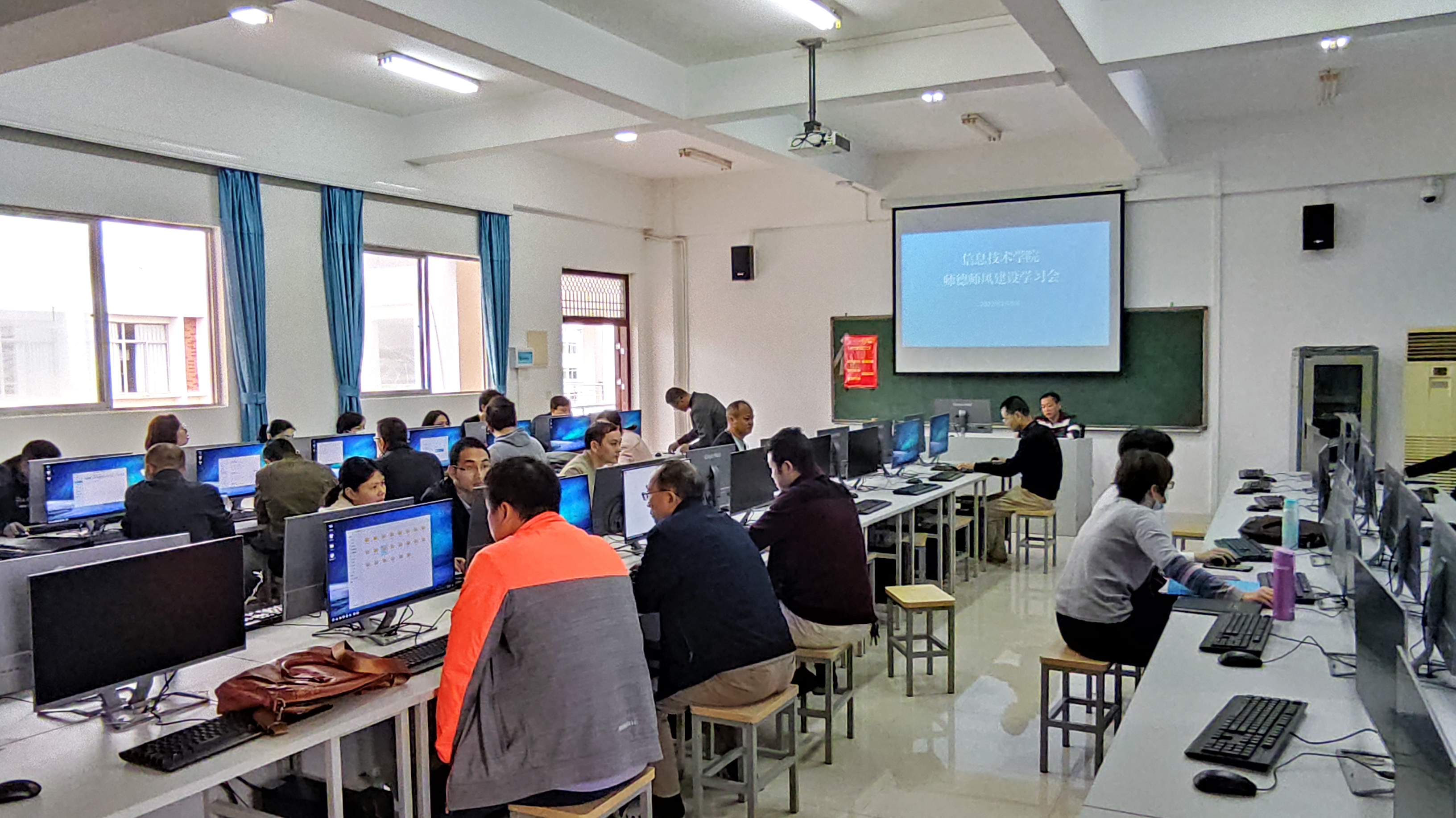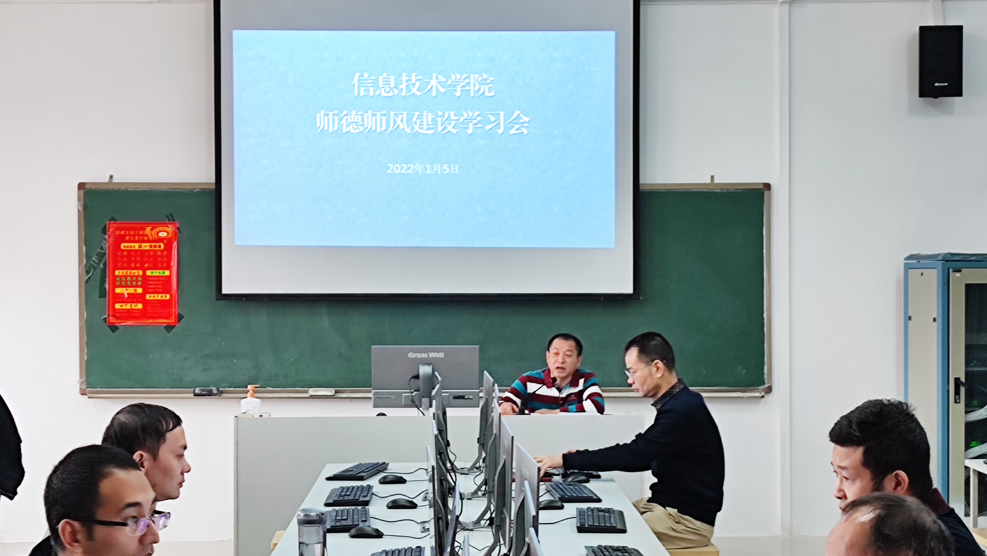 为深入贯彻学习习近平新时代中国特色社会主义思想,进一步加强师德师风建设,努力建设一支“有理想信念、有道德情操、有扎实学识、有仁爱之心”的员工满意的好老师,1月5日上午,太阳成集团tyc151cc在4-511B教室召开师德师风建设学习会议。全体教职工参加会议,会议由公司党总支书记孙金主持。