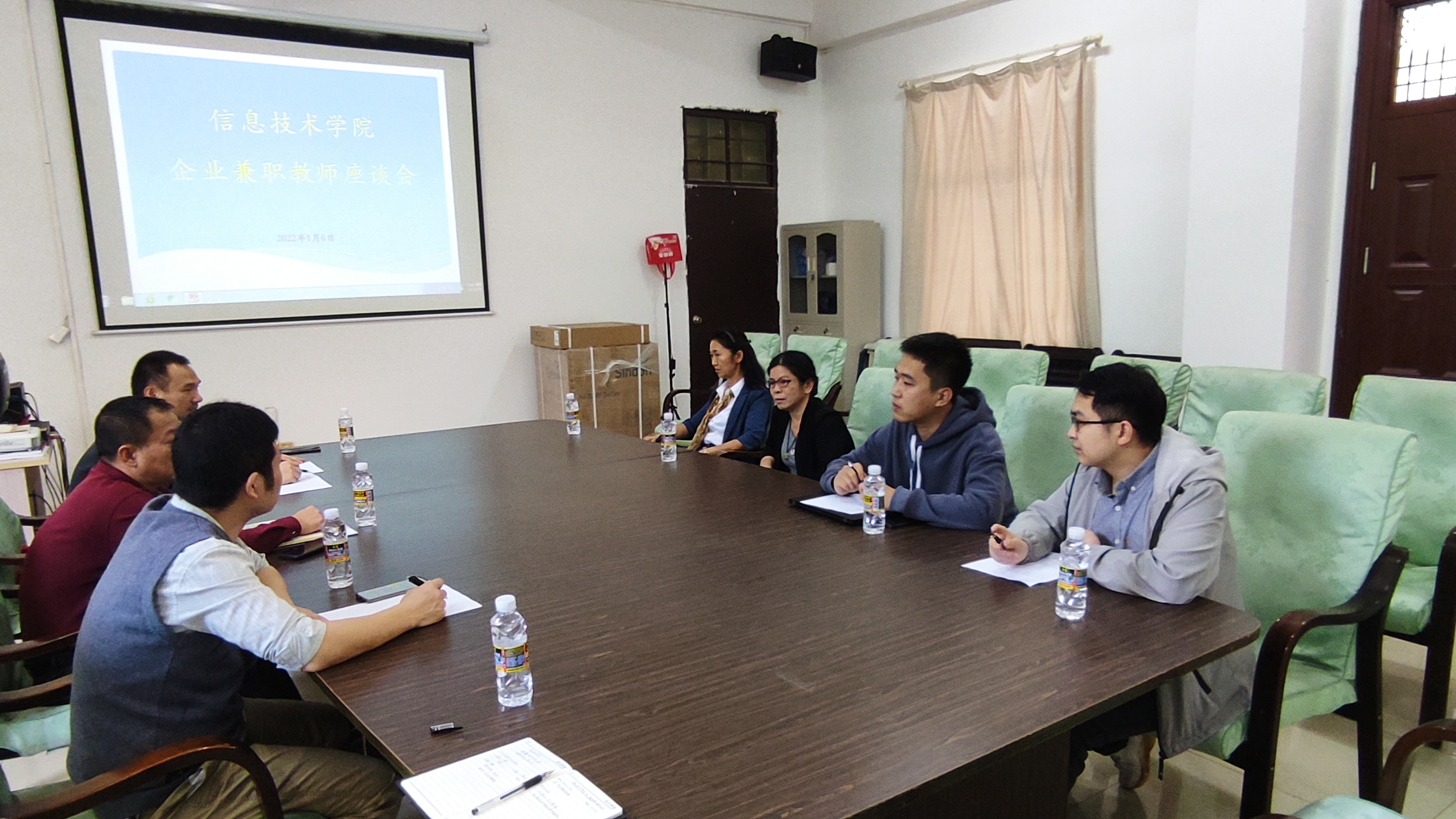 为加强兼职教师管理,规范兼职教师教学行为,1月6日下午,太阳成集团tyc151cc在4-213会议室召开企业兼职教师座谈会。公司党总支书记孙金、副经理康东、党政办公室副主任韩昌豪及企业兼职教师代表参加了座谈会,会议由孙金书记主持。