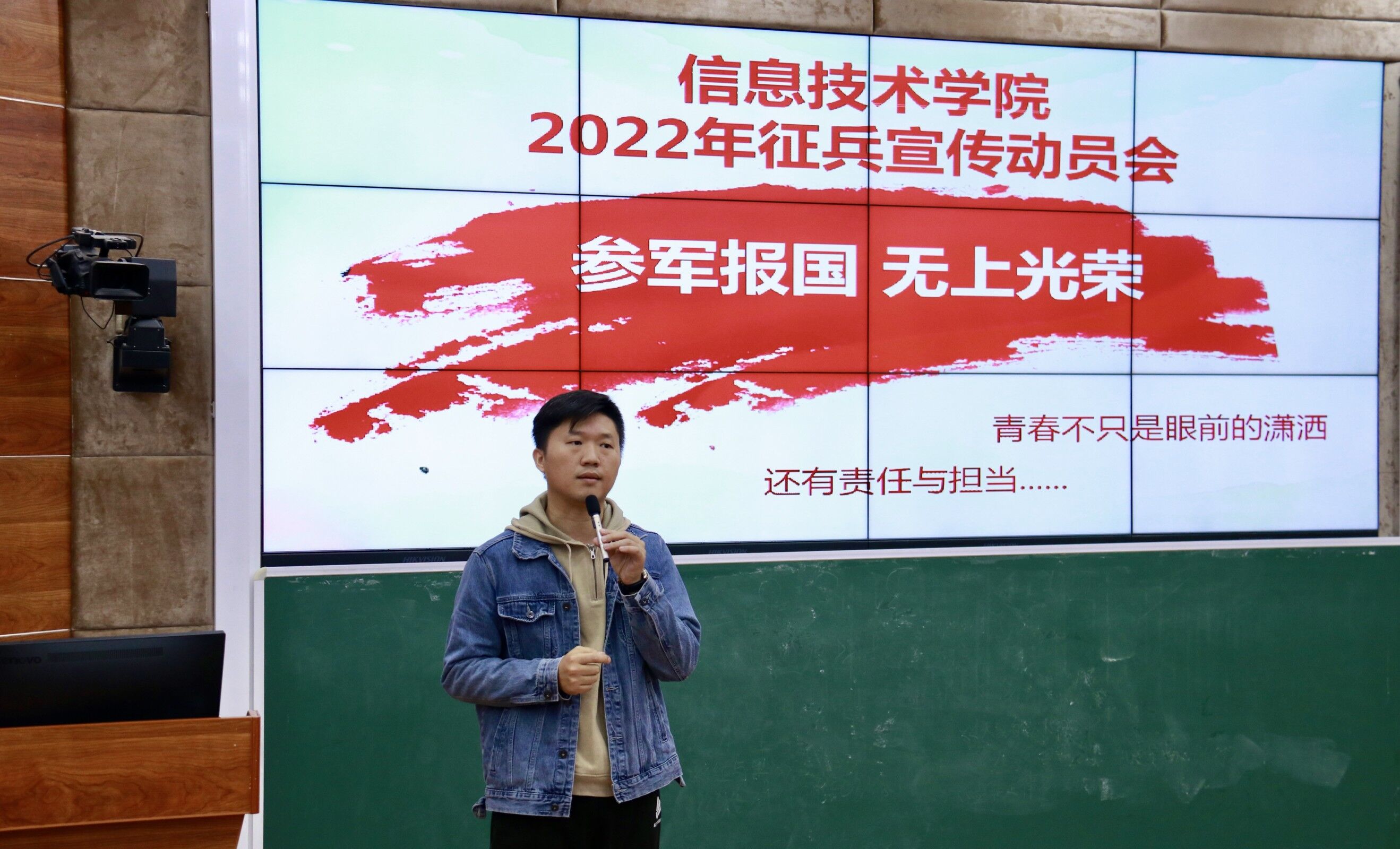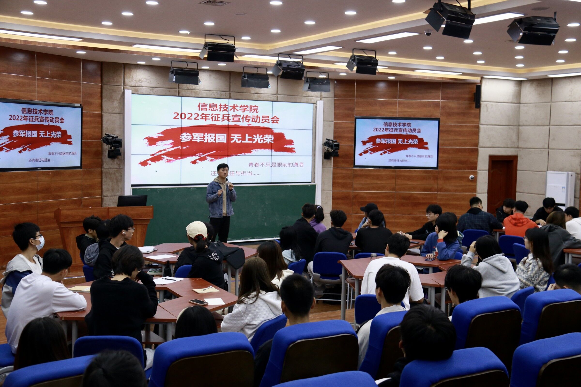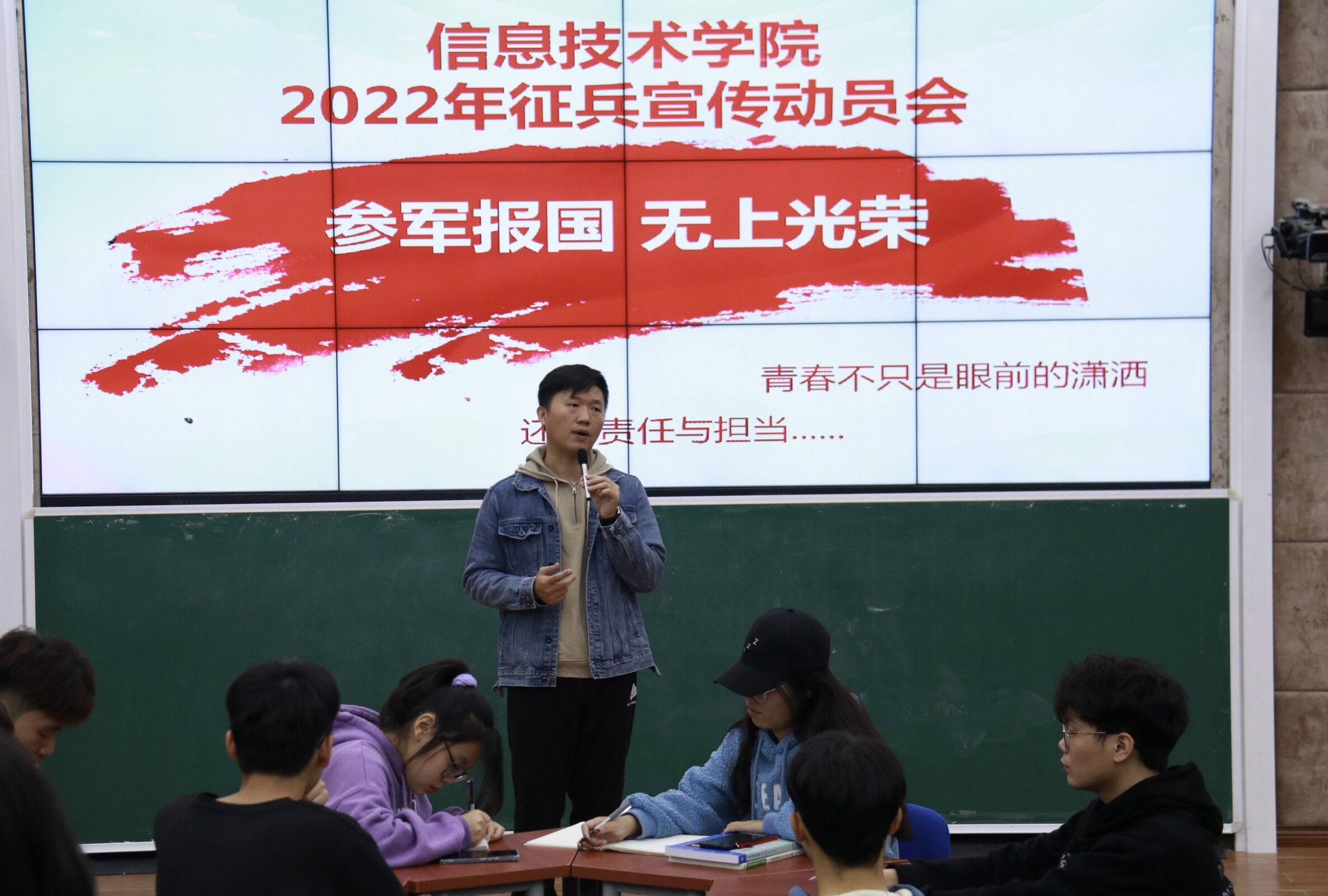 2021年12月20日(青年媒体中心 宋岱熹讯),为鼓励当代老员工响应国家号召,积极报名参军入伍,公司于中午12:30在沉浸式教室2-215开展2022年征兵宣传动员会,本次动员会由学工办主任梁其钰老师主持,太阳成集团tyc151cc全体团学成员参加。