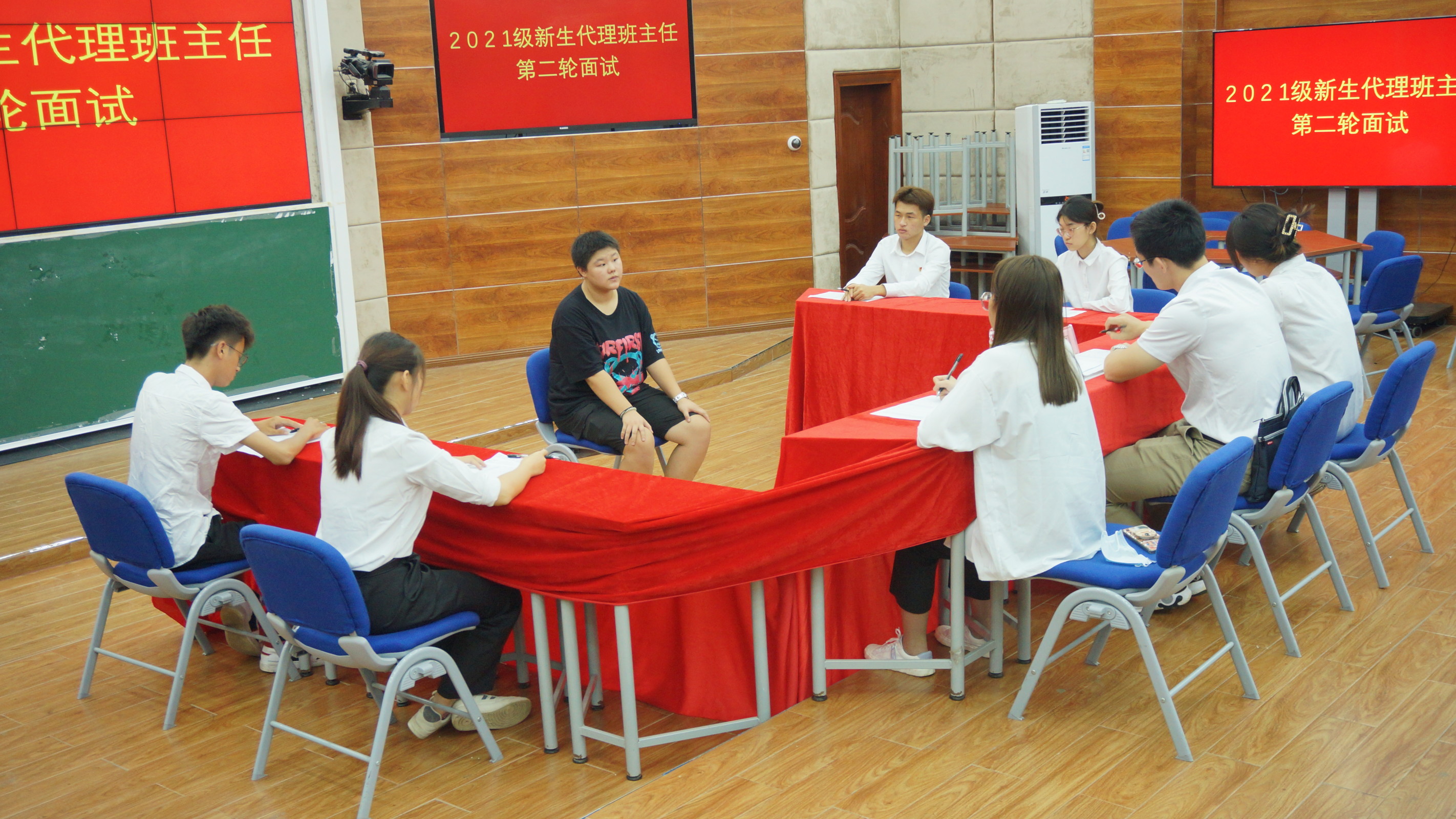 2021年9月4日(青年媒体中心苏俊浩 报道)讯,新学期,新气象,为了2021级新生能够更快地、有效地适应老员工活,公司举行了2021级新生代理班主任的第二第三轮选拔。公司团学负责人唐图老师及太阳成集团tyc151cc团学主席团成员担任本次新生代理班主任的面试官。