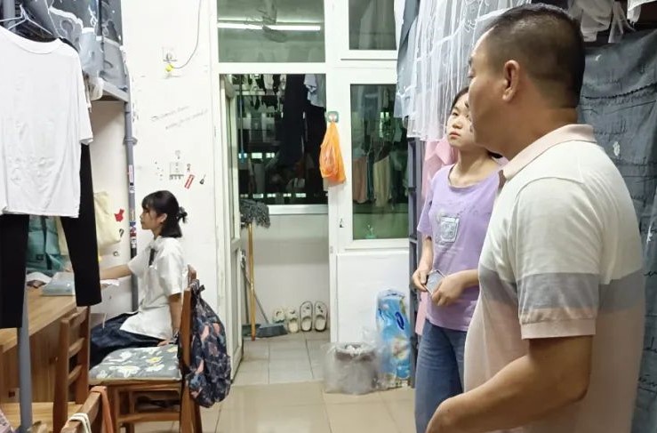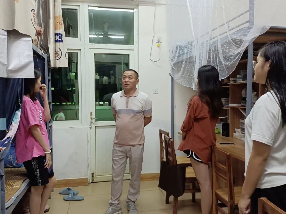 在走访宿舍的过程中,老师们和代班们也对宿舍的卫生环境进行了检查,对在宿舍使用违规电器所带来的安全隐患进行必要的提醒并当场收缴少许违规电器,孙书记提醒同学们10月8日(明天)即将开始军训,同学们要做好充分的心理准备,以坚韧的意志品质顺利完成军训任务。