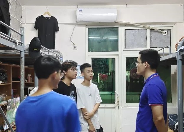 (青年媒体中心 韩丹讯),10月7日晚,信息技术公司党总支书记孙金老师、2021级辅导员唐图老师、以及2021级代理班主任深入公司员工宿舍进行走访检查,每走进一间宿舍,孙书记和唐老师都热情地与同学们交流,询问国庆假期同学们的计安排及收获。