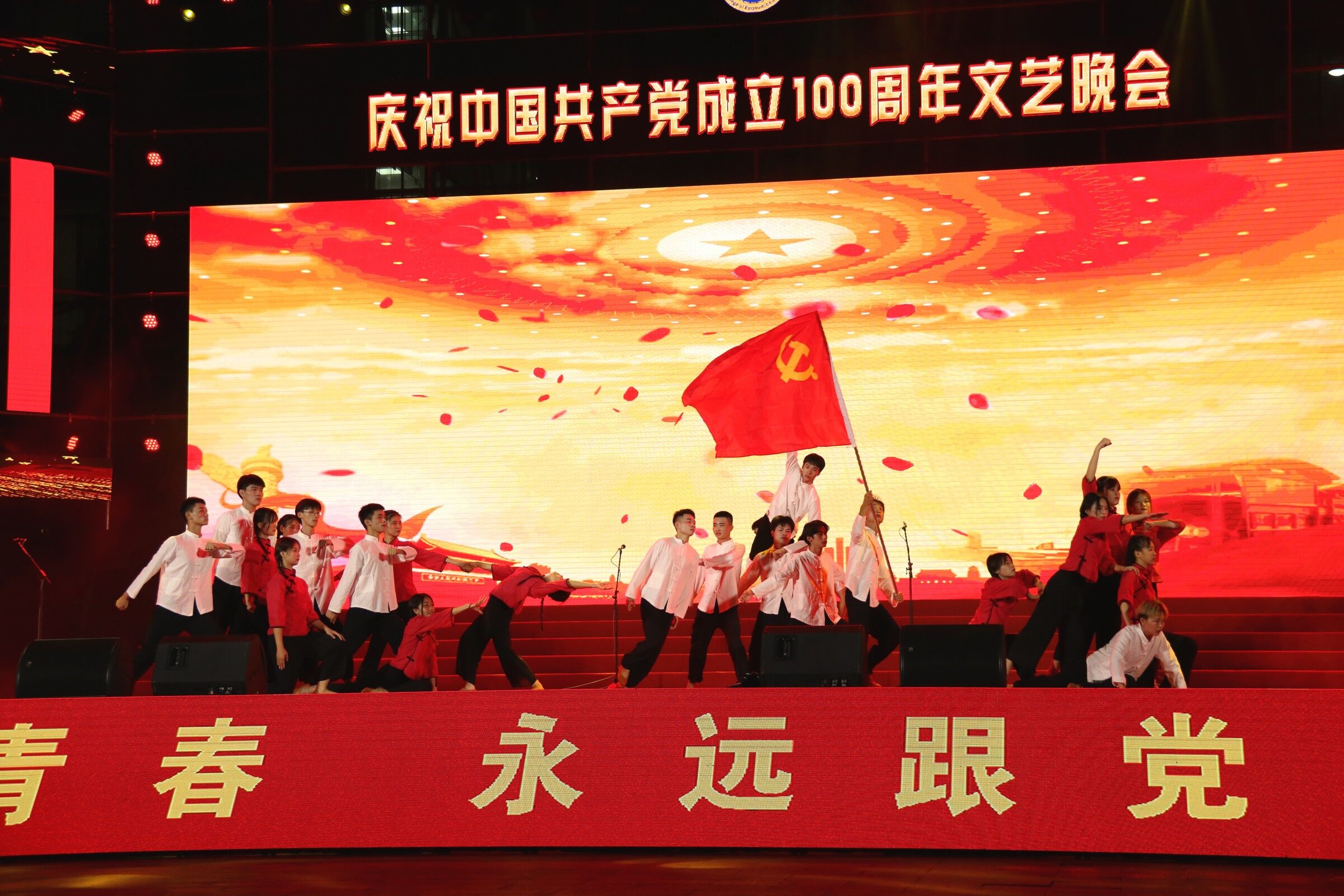 为庆祝建党100周年,太阳成集团tyc151cc于6月30日晚在经贸广场隆重举办“永远跟党走,启航新征程”文艺晚会。