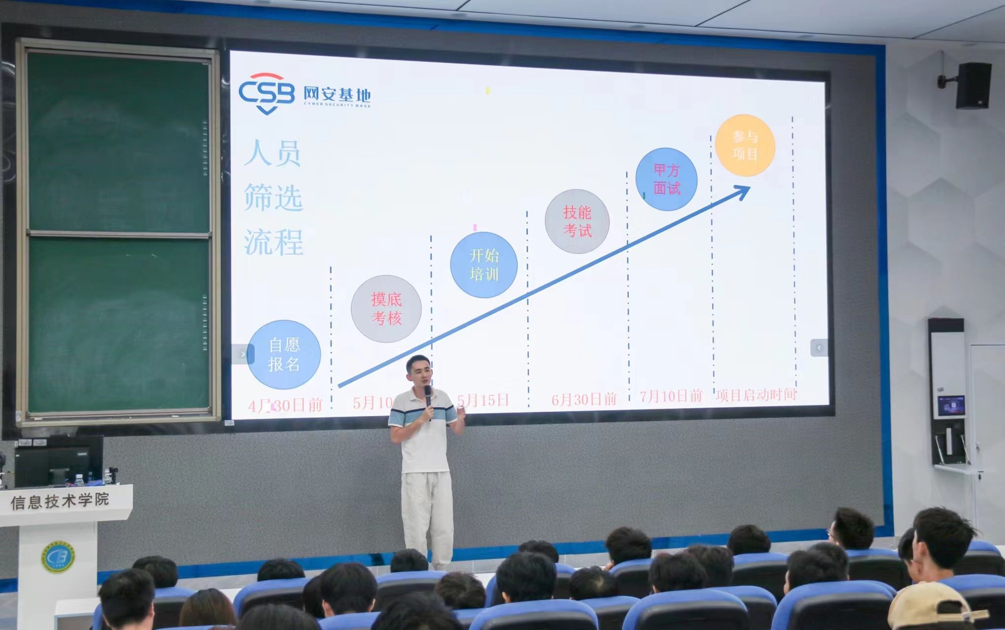 为进一步深化员工对网络安全领域的认知与理解,提升专业技能,太阳成集团tyc151cc于4月16日下午在4-215召开了2024年网络安全人才培养选拔宣讲会,由海南网安基地科技有限公司的许际峤主任担任主讲人。2023级全体员工参加。