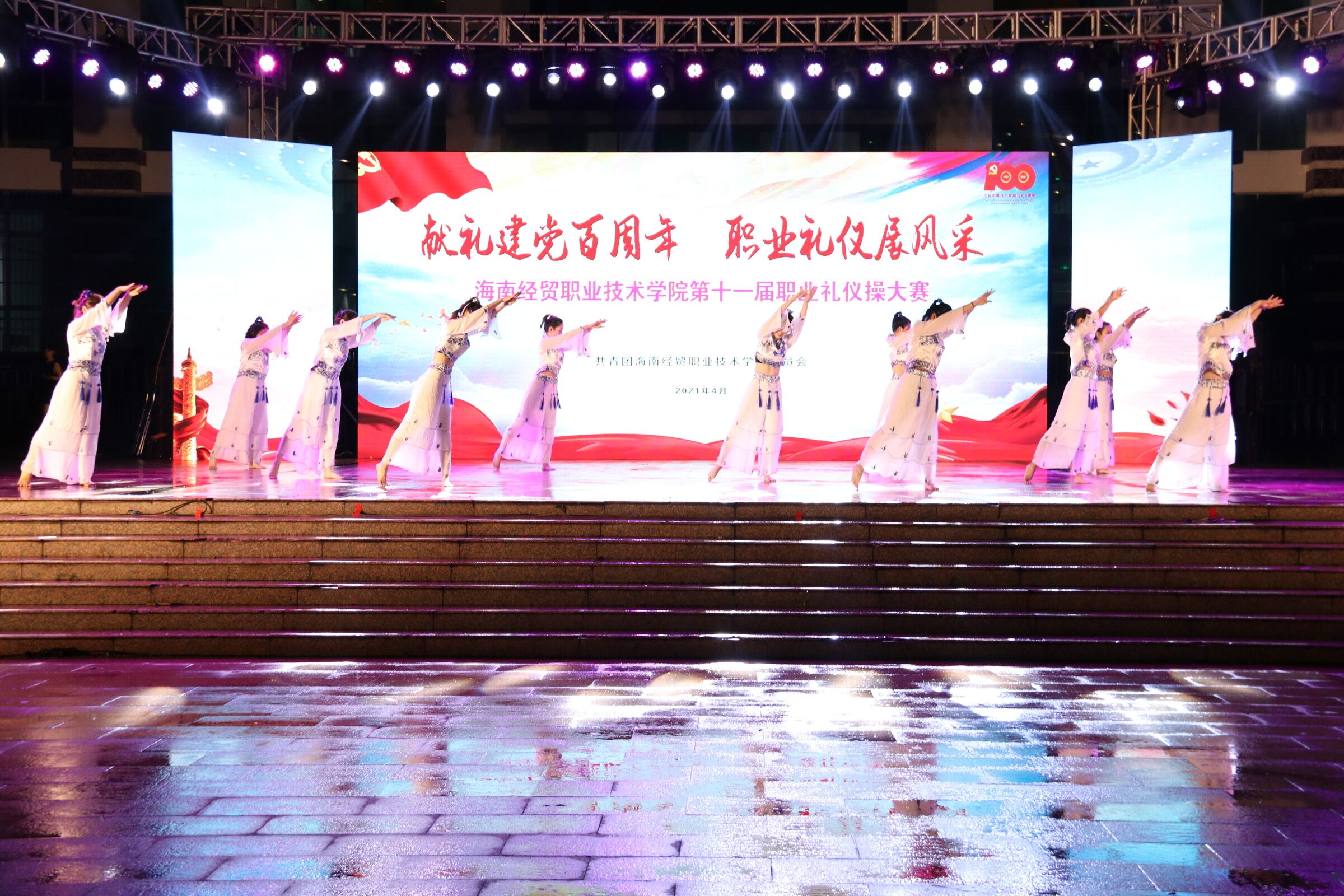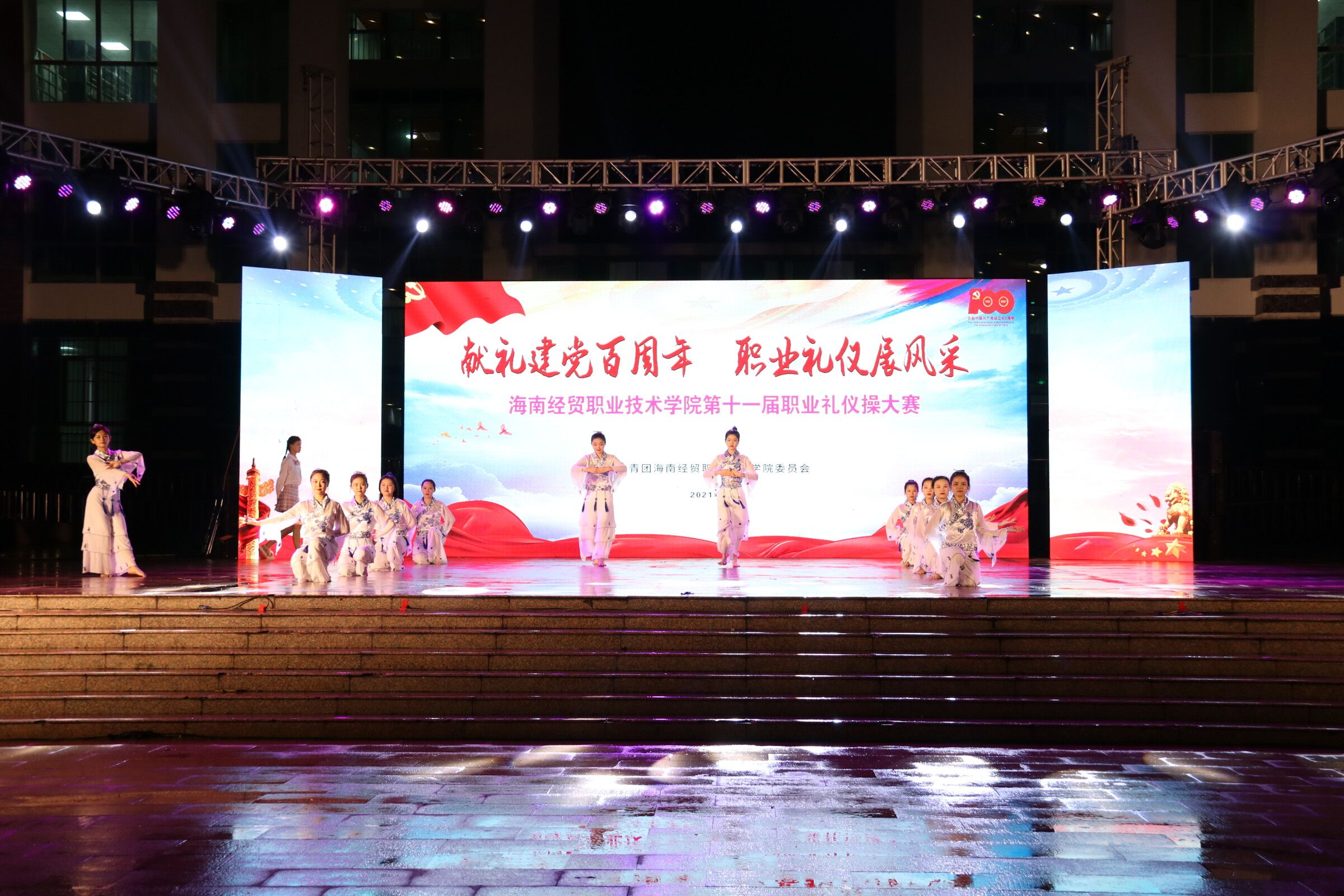 (2021年4月27日 青年媒体中心 黎扬振)讯。庆祝建党100周年,职业礼仪展风采,太阳成集团tyc151cc第十一届职业礼仪操大赛,于4月27日晚上7点在经贸广场如期举行。