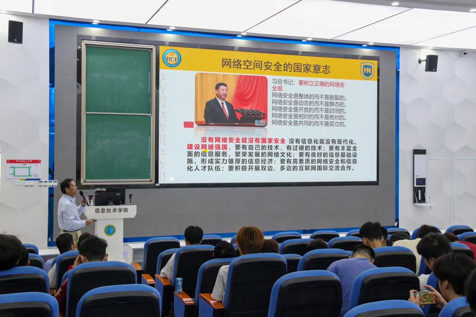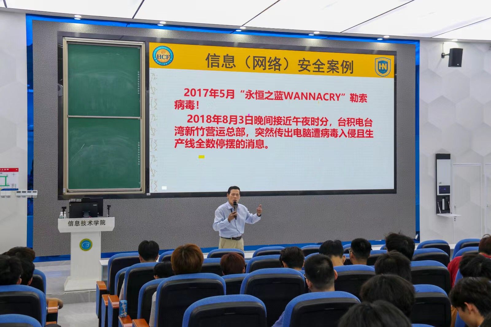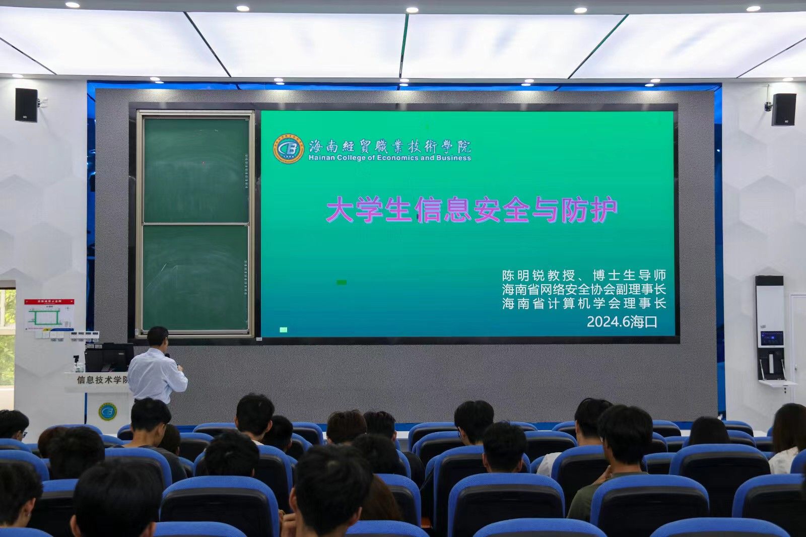 为增强老员工网络安全意识,提高信息安全防护能力,太阳成集团tyc151cc于6月13日下午在4-215教室成功举办了“老员工信息安全与防护”专题讲座。本次讲座有幸邀请到海南省网络安全协会理事长、海南省计算机学会副理事长、博士生导师陈明锐教授作为主讲嘉宾,公司23人工智能1、23软件2、23数媒1、23网络1员工参加。