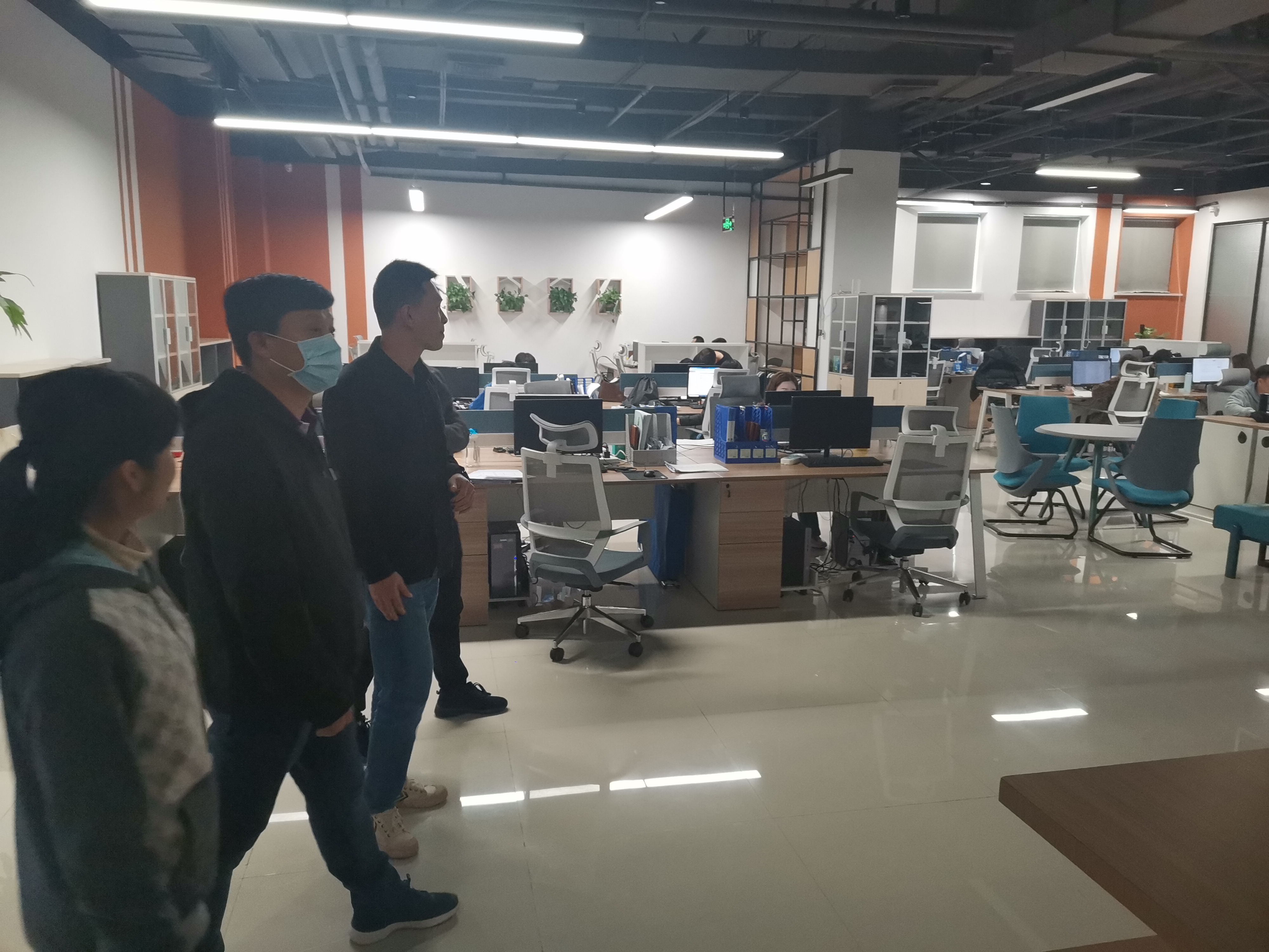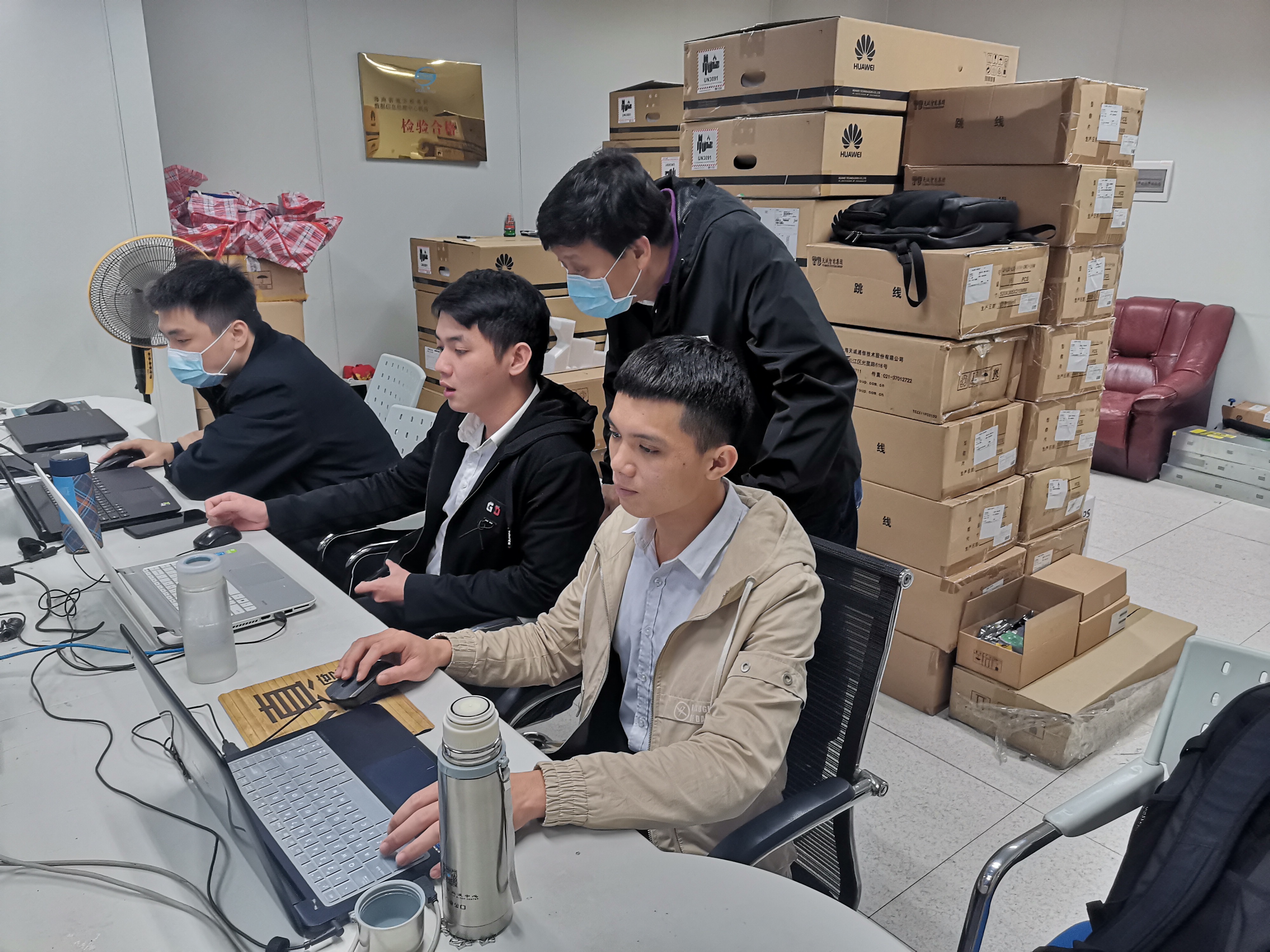 第二站走访的企业是海南好思达网络科技有限公司,好思达公司与公司在人才培养、实践课程授课和顶岗实习方面已经展开合作。今年在好思达入职的计算机网络技术专业员工有12名,分布在海口、澄迈、三亚、白沙等地驻点进行网络运维技术服务。在好思达公司单经理与技术主管就接下来的合作模式进行了规划和落实,接下来便前往驻点单位海南省税务局城西办公区,在这里,18网络1班杜进祥和18网络3班的吴吕处两名同学全职办公进行网络运维技术支持,他们表示这里可以边做边学,慢慢积极实战技能和工作经验。