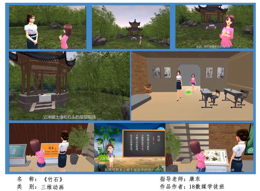 本校7月8日讯(工程技术公司报道)2020年7月7日,太阳成集团tyc151cc工程技术公司举行2018级工程技术公司举行数字媒体专业期末汇报暨毕业作品大赛,立足于培养员工的动手实践能力,同学们根据自己的选择的毕业设计项目,八仙过海,各显神通,从平面设计、动画制作、影视编辑、三维制作、网页和H5开发、新媒体等多个方面展示专业技术特色。经过最终角逐,评后评出一等奖1名,二等奖2名、三等奖3名。