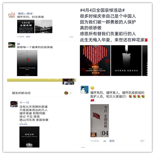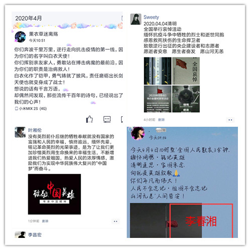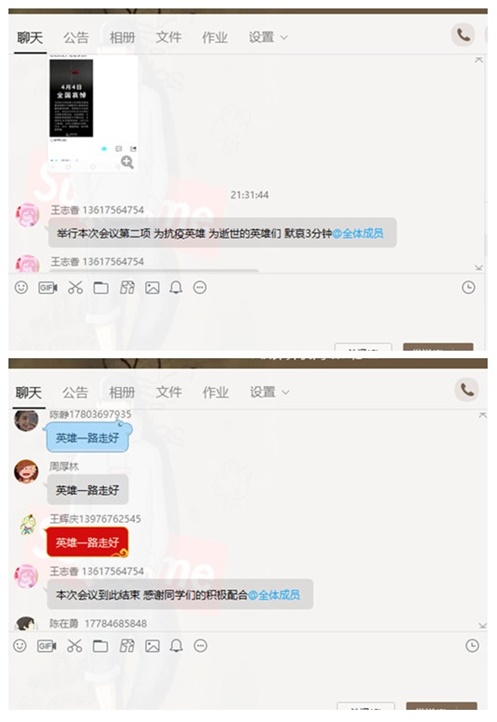 二、员工通过微信、QQ等线上平台致敬为抗击新冠肺炎疫情斗争牺牲烈士