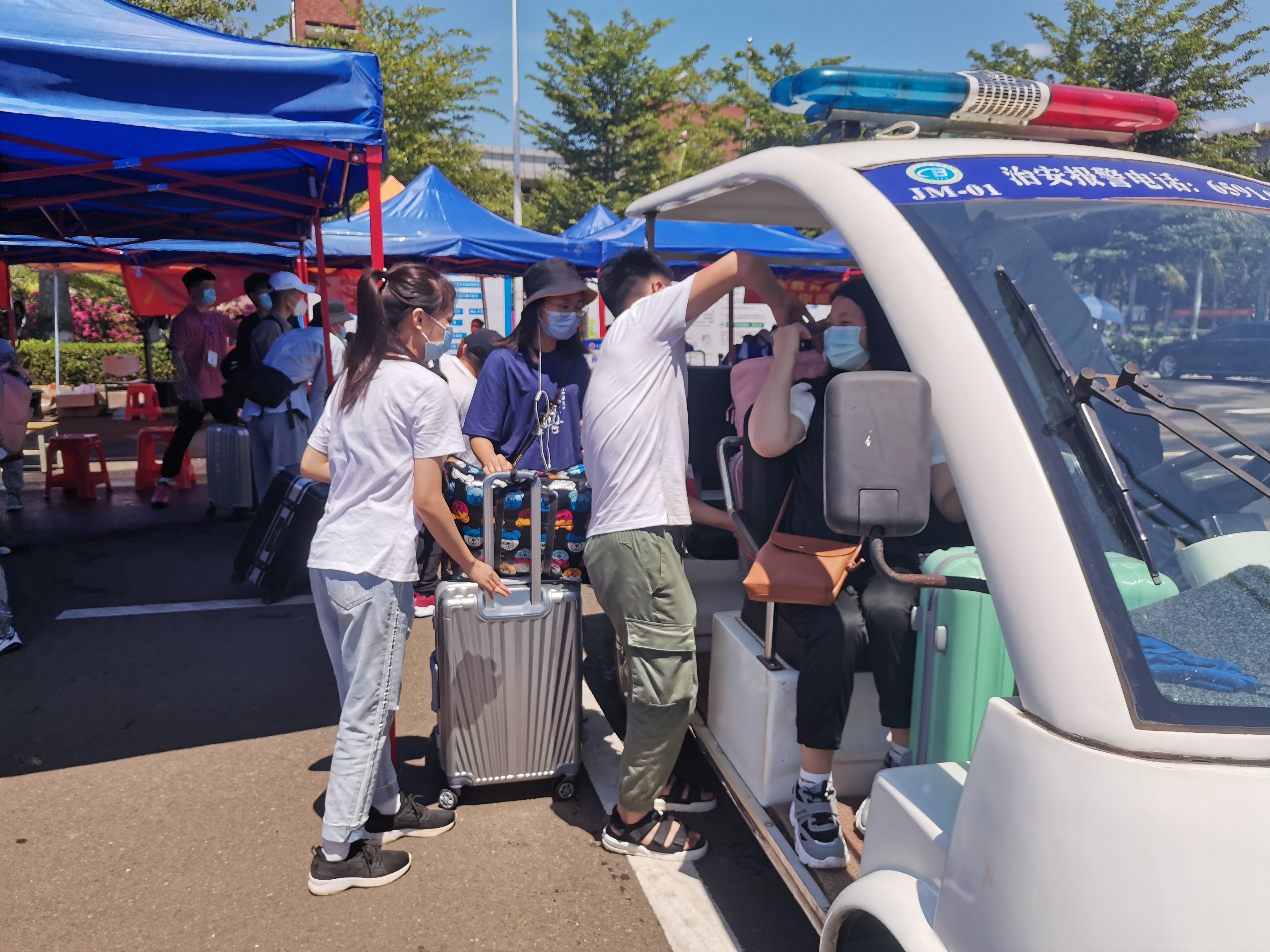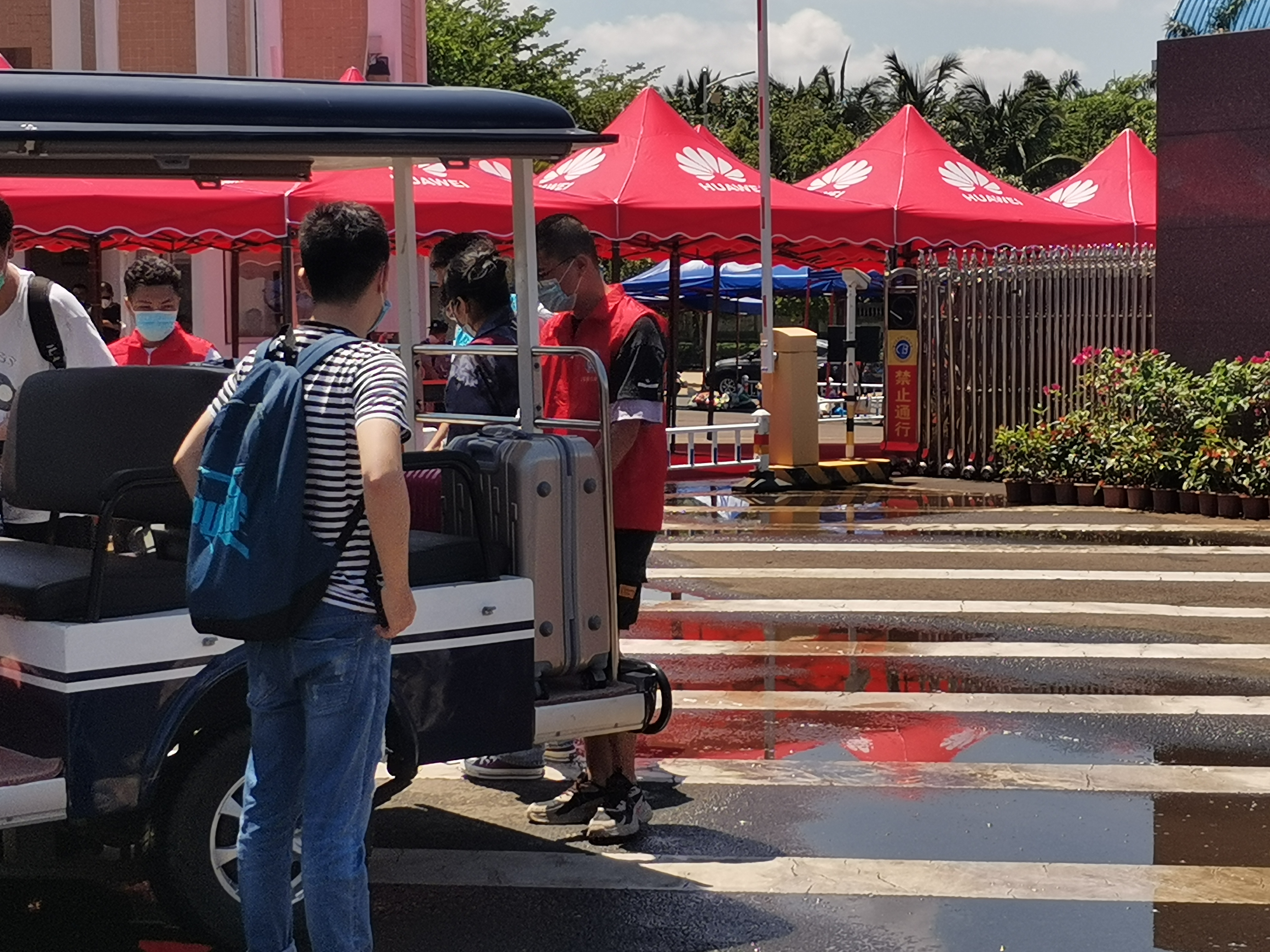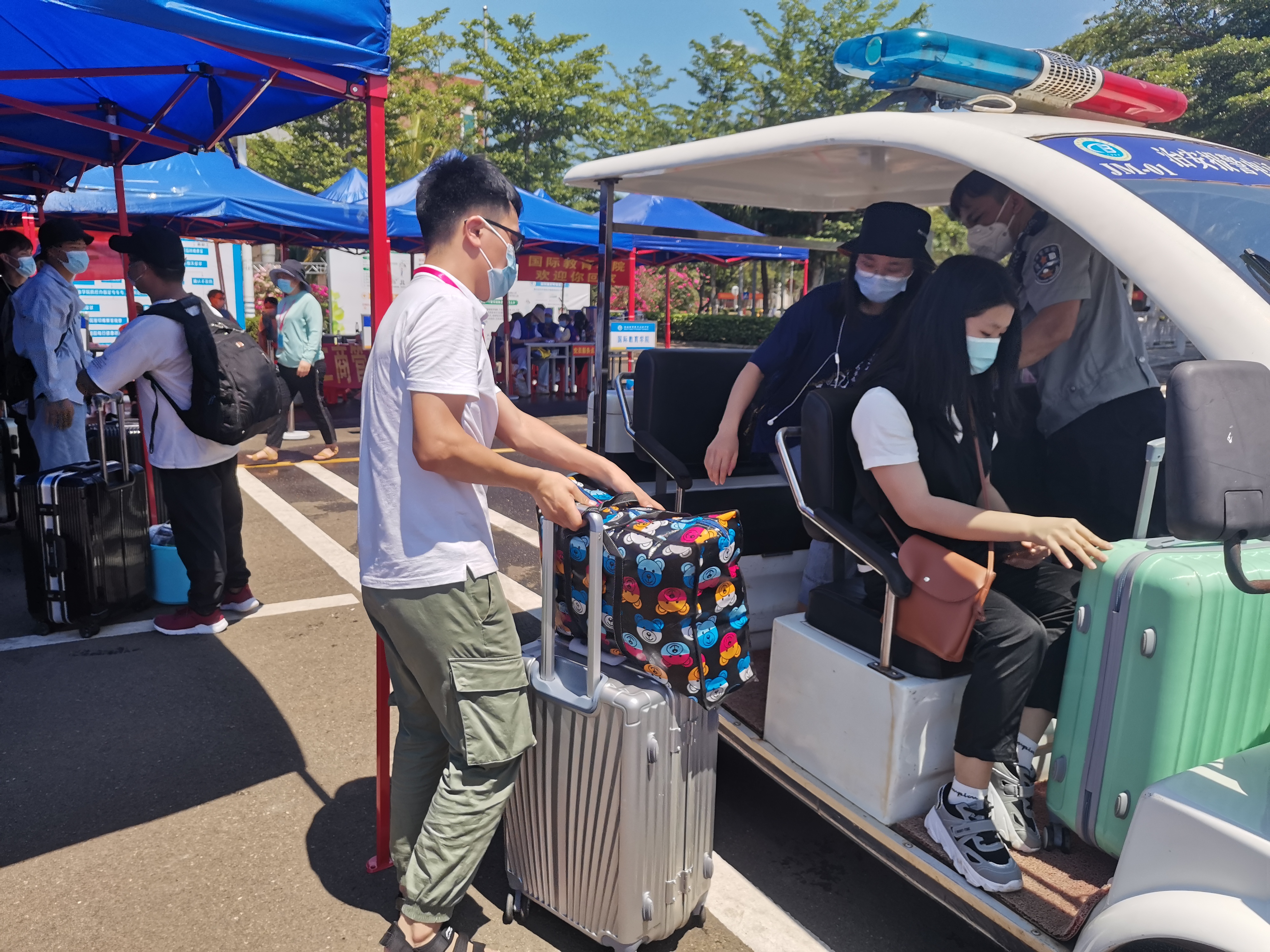 返校员工及行李上回宿舍的电瓶车