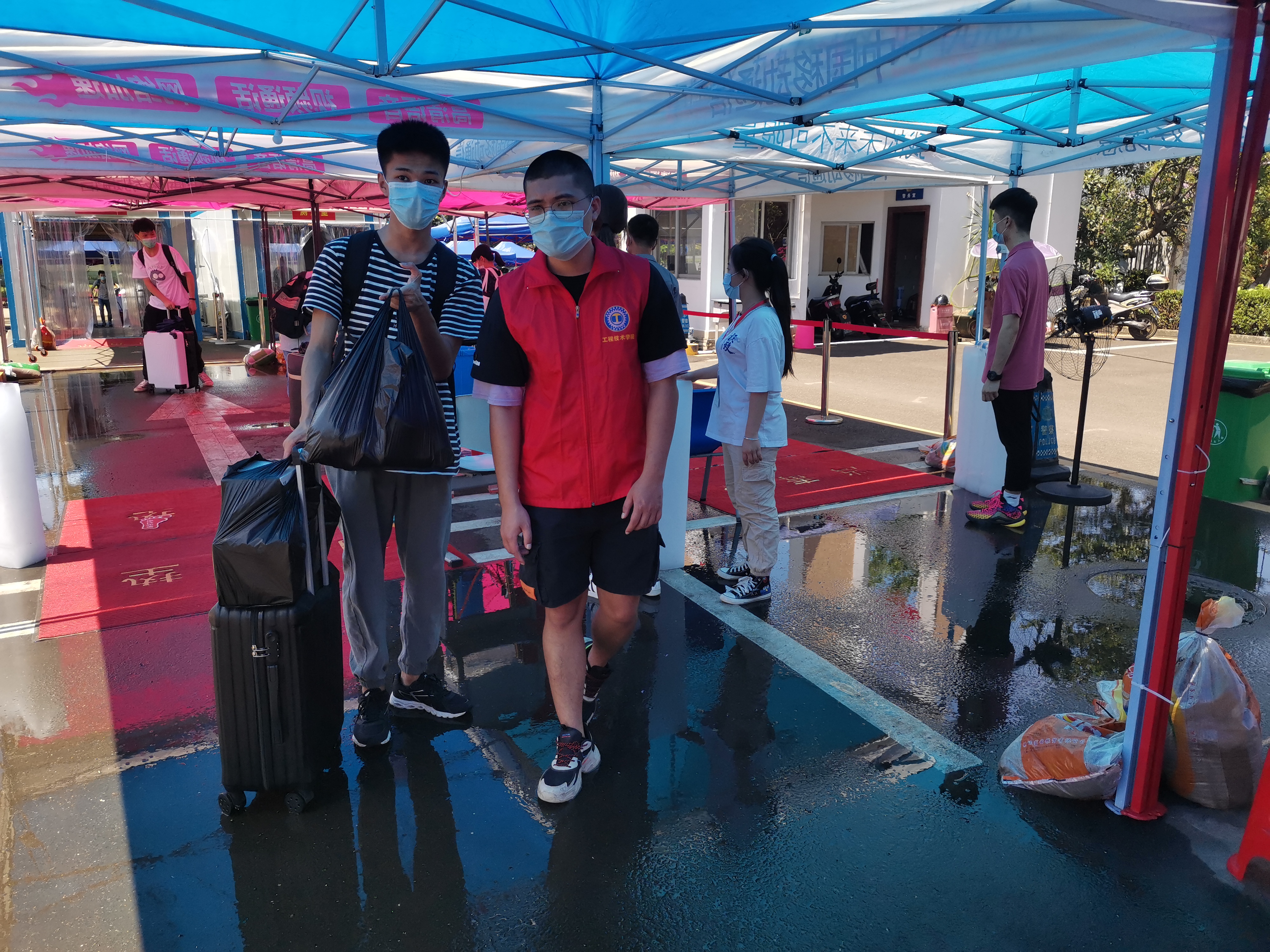 将一个又一个同学接进校门,送上回宿舍的电瓶车,时隔4个月的校园生活终于开始了新的篇章.同学们洋溢的笑脸,老师们深切的关怀,依旧是脑海里熟悉的画面,希望大家能在校园里继续扬起理想之帆,圆满完成自己的学业,同时,期待与省外返校同学们的相见。