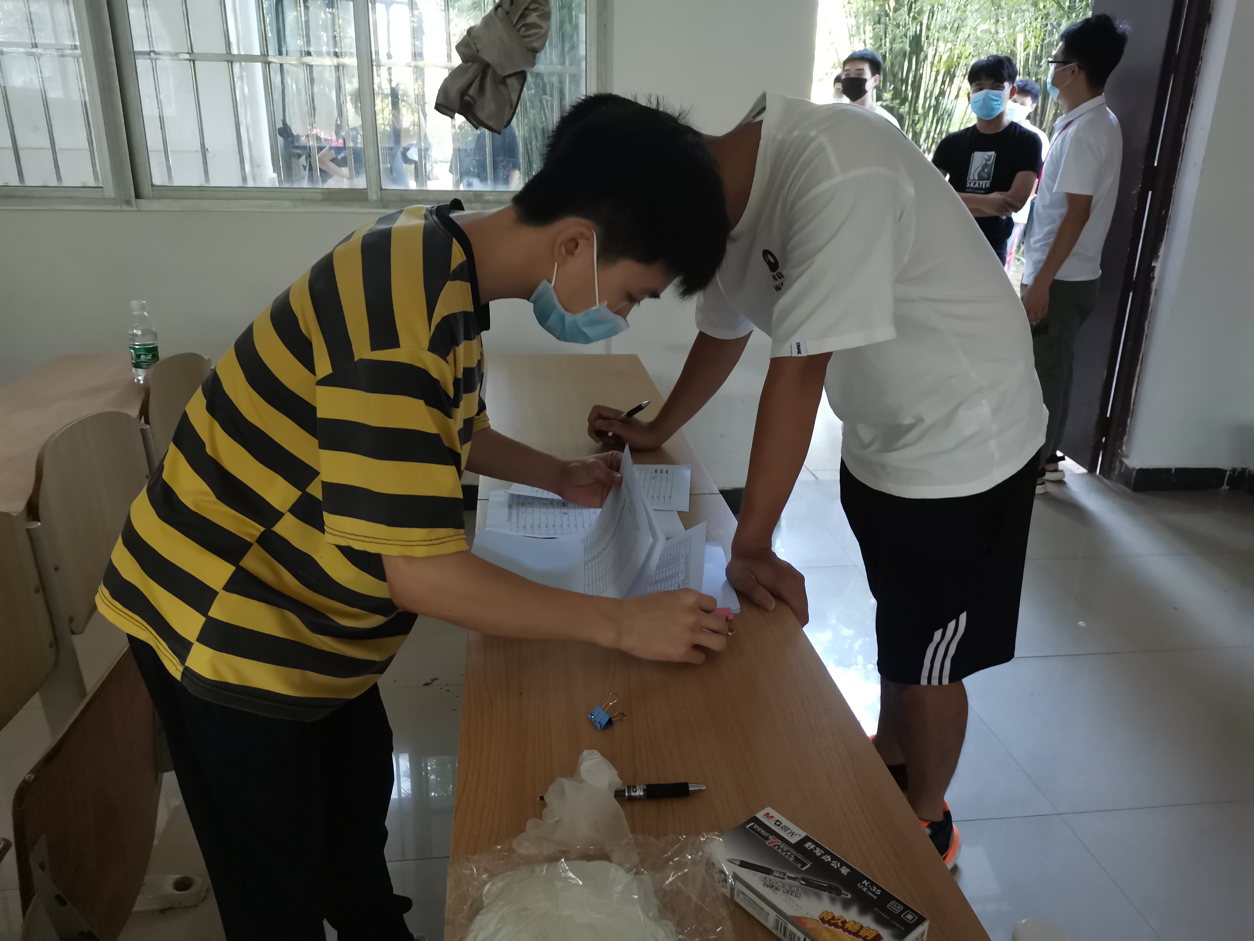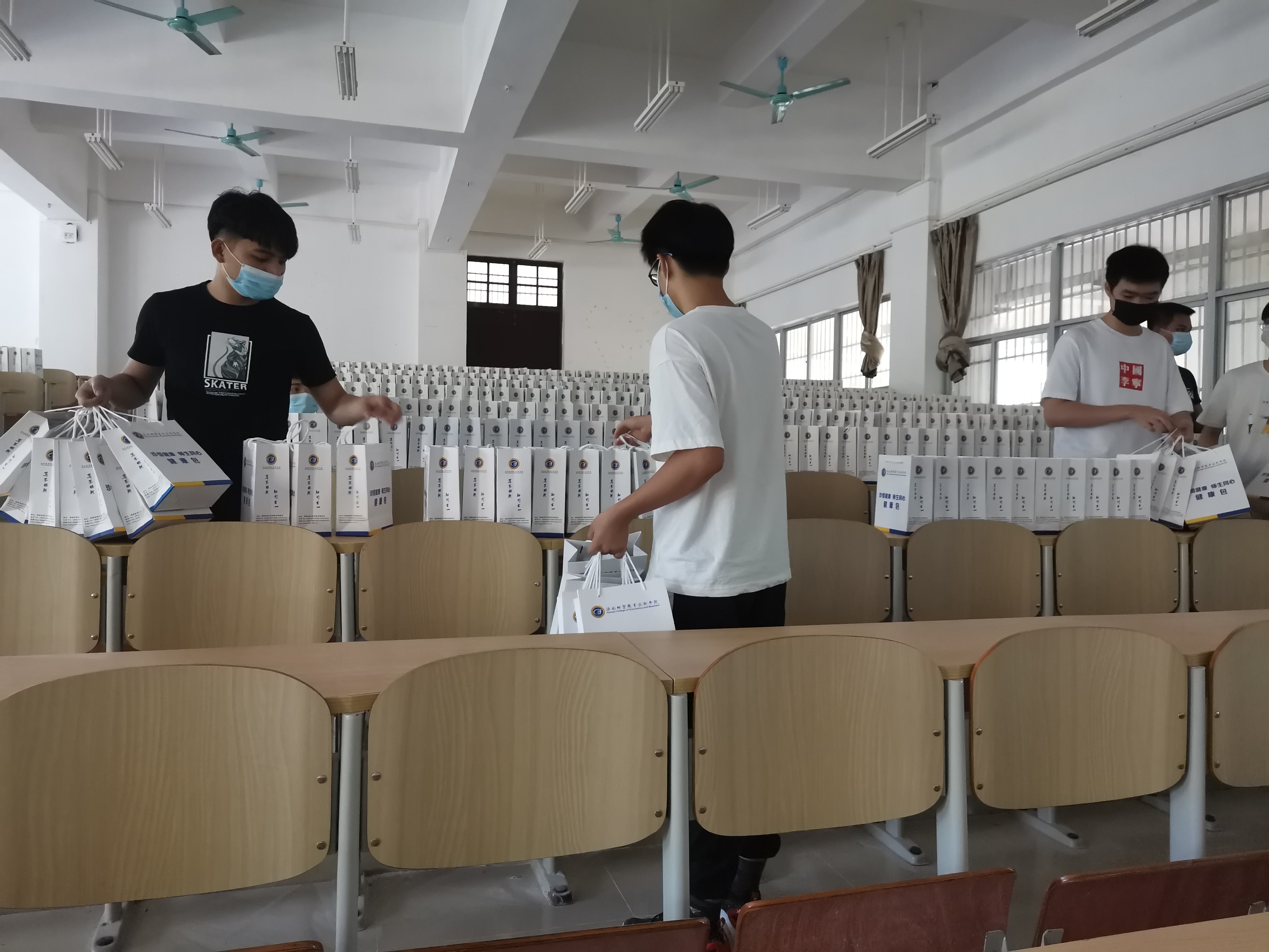 17:00,公司各班级派代表前往2-102领取同学们的健康包。辅导员老师和志愿者们为大家清点发放,确保现场秩序,不漏掉每位同学的防疫物品。