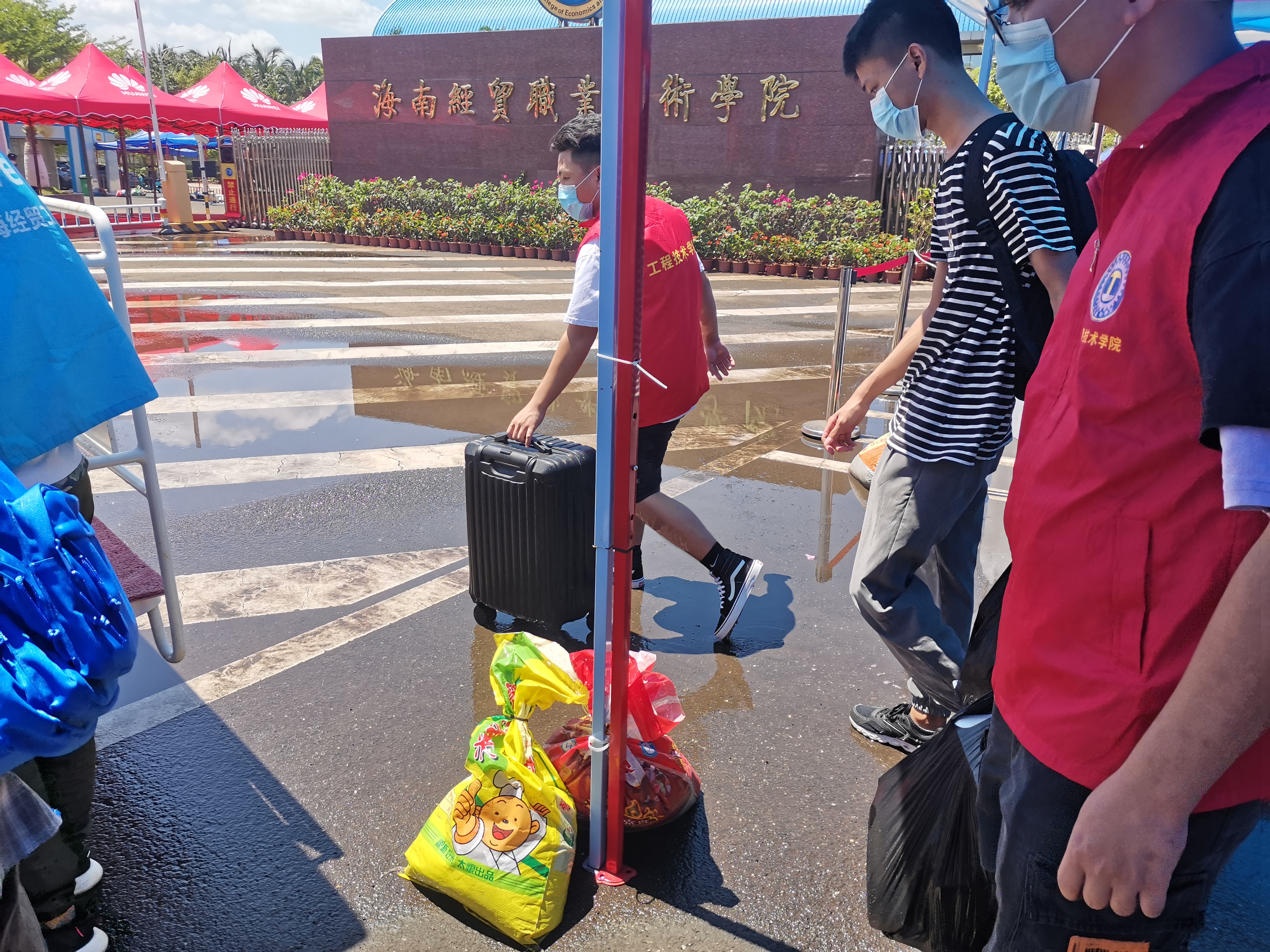 公司志愿者助返校同学们搬运行李