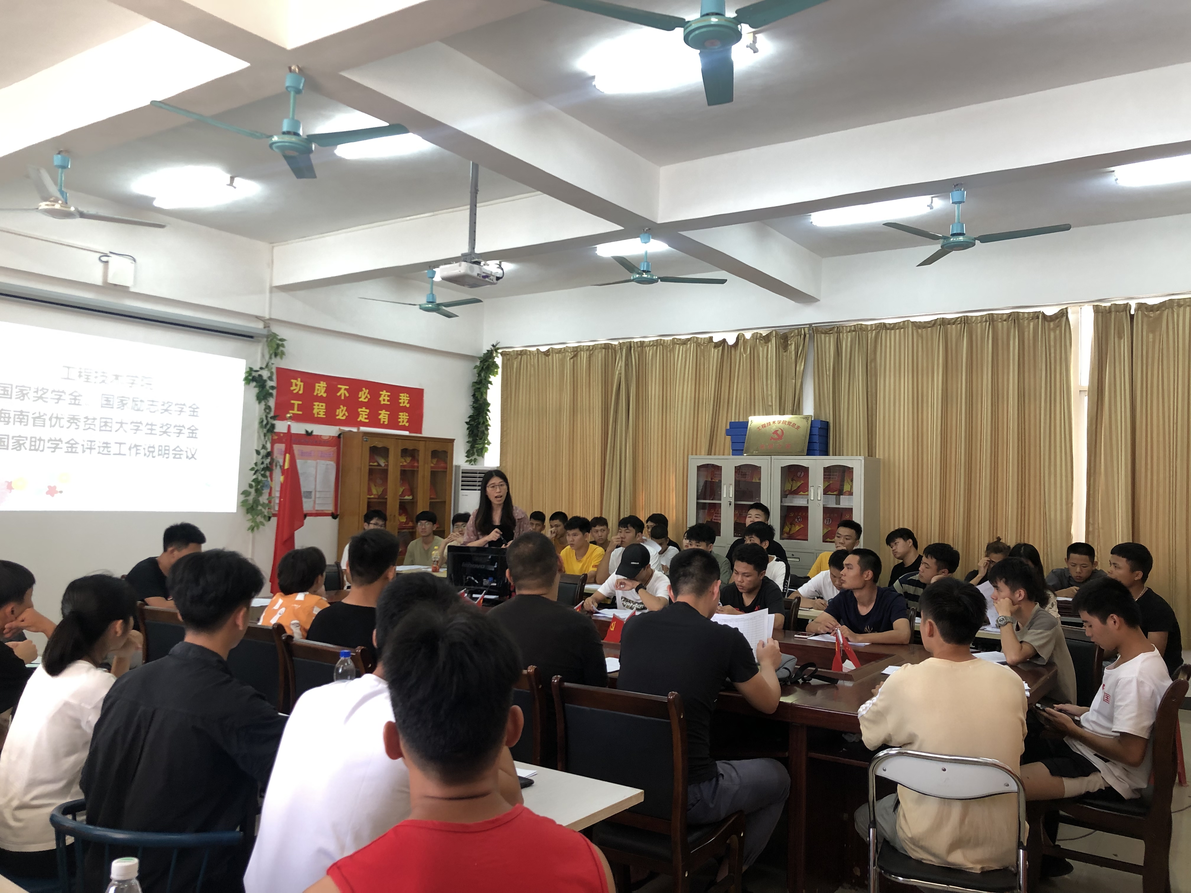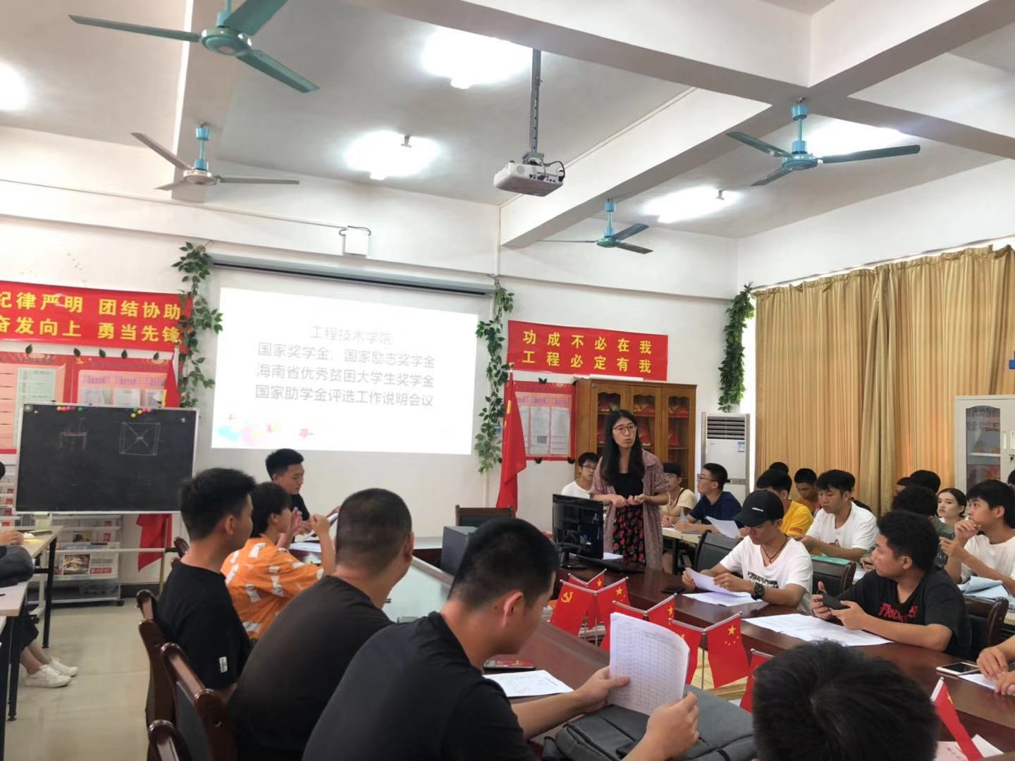 郭蓉佳老师主持会议并带领各班长学习太阳成集团tyc151cc员工工作处下发的关于“公司奖学金”评审工作、全日制残疾员工、特殊家庭经济困难员工减免学费和住宿费工作、国家奖学金评审工作、国家励志奖、国家助学金及海南省优秀贫困老员工奖学金评审工作的通知。随后向大家讲解申请各奖助学金的注意事项、所需资料、班级名额分配、资料提交时间。