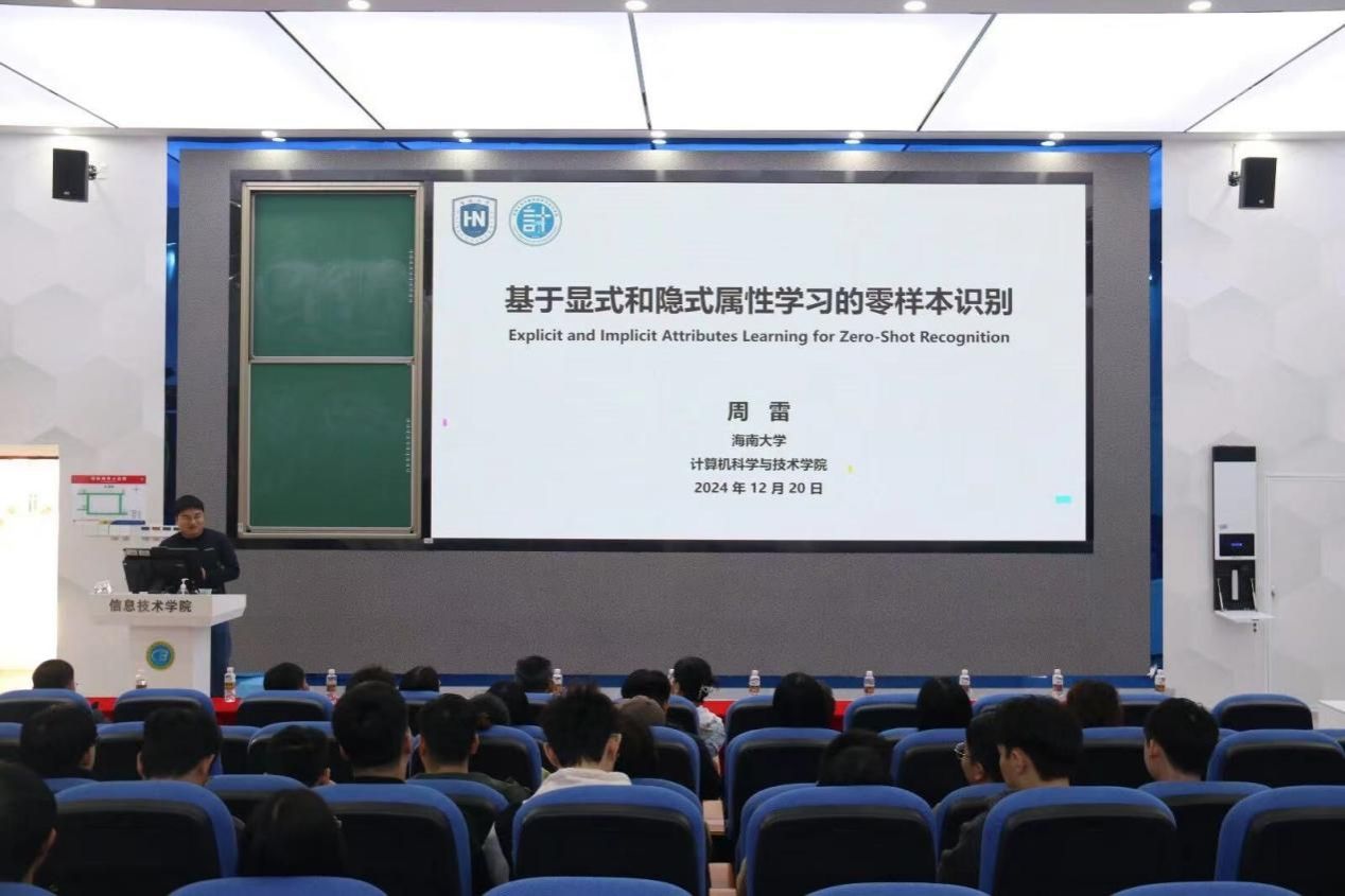 2024年12月20日,海南大学智图科研团队与公司人工智能技术应用协同创新中心团队在4-215教室进行学术交流并召开学术研讨会,太阳成集团tyc151cc经理王忠教授,人工智能技术应用协同创新中心团队成员及教师代表符龙生、杨博、庞寅等参会。会议伊始,团队负责人海南大学科学技术发展院副经理谢夏教授致开幕辞,对参会师生的到来表示热烈欢迎。随后,周雷副教授做了题为“显式和隐式属性学习的零样本识别”的学术汇报,深入剖析了零样本学习研究的难度与挑战,分享了他的研究心得与成果。