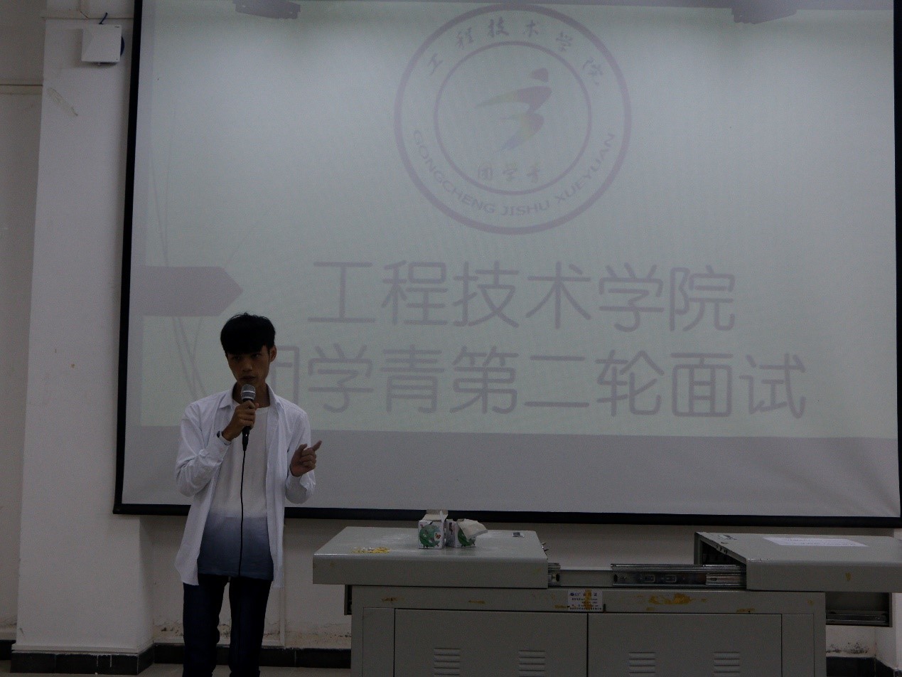 会议首先是让面试同学们上台做一个简短的自我介绍、谈谈为什么要加入团学青组织,做完自我介绍后,各部长们根据同学们自我介绍,从工作相关的基础知识、工作热情、为同学服务的意识等方面提出不同的问题来考察新生,最终确定晋级人选。