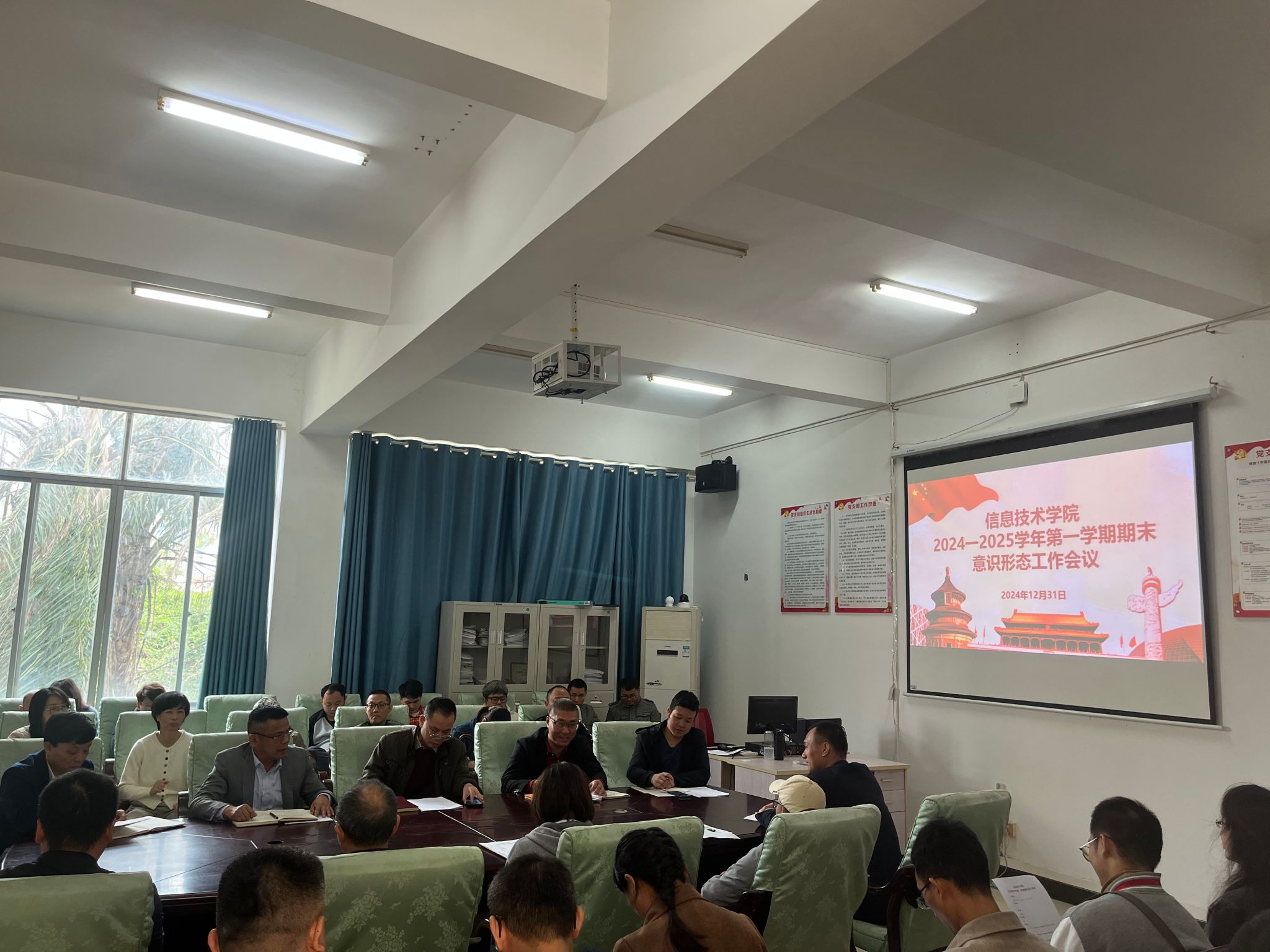 2024年12月31日,太阳成集团tyc151cc在4-213会议室召开意识形态工作专题会议,会议由公司党总支书记符胜主持,信息技术公司党政领导及全体教职工参加会议。