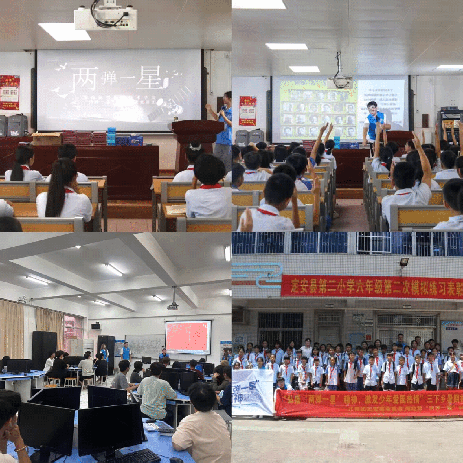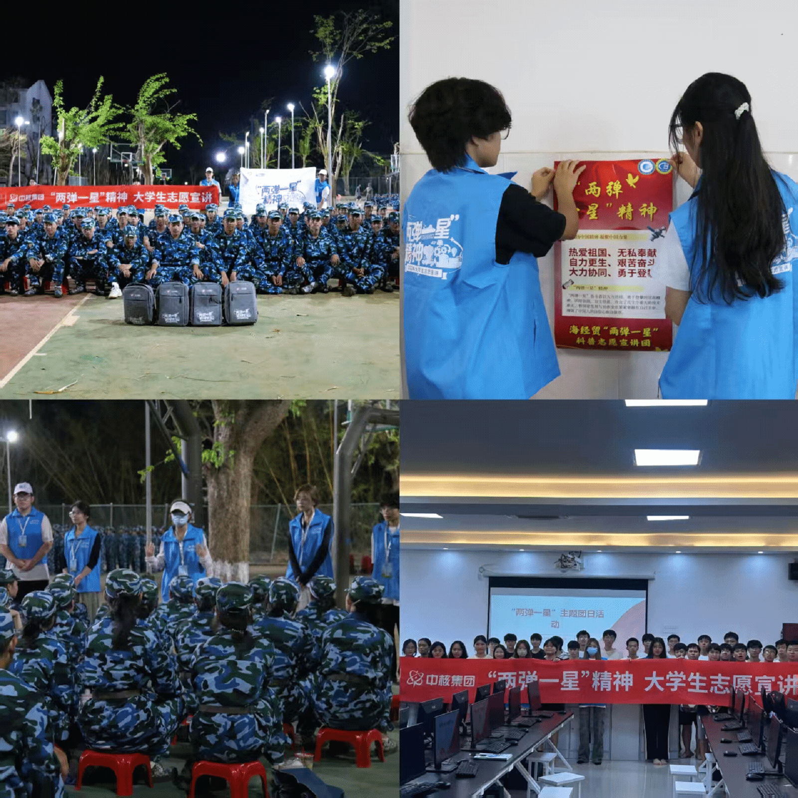 自成功立项以来,团队在校团委和公司的正确指导下不断探索红色文化铸魂育人新模式,积极寻求红色文化与高校思政教育的契合点,团队从4月-10月在校内外开展“两弹一星”精神系列宣讲志愿服务活动。开展宣讲培训23次,采用线上会议、线下会议的形式,组织宣讲团成员到中小学、社区、高校等地开展暑期三下乡宣讲、校内班级主题团日活动、室外军训场地宣讲、室内“两弹一星”红色爱国主义题材观影等类型的活动,志愿服务活动覆盖海南省海口市、海南省定安县,服务对象为高校员工和中小员工,活动累计宣讲28场,直接受益群众2037人次,团队志愿服务累计时长超过1000小时、形成报告、视频、宣传册、图集等11份,宣讲活动得到学习强国等国家级、海南日报等省级媒体报道共12次,在全社会产生了广泛的积极影响。