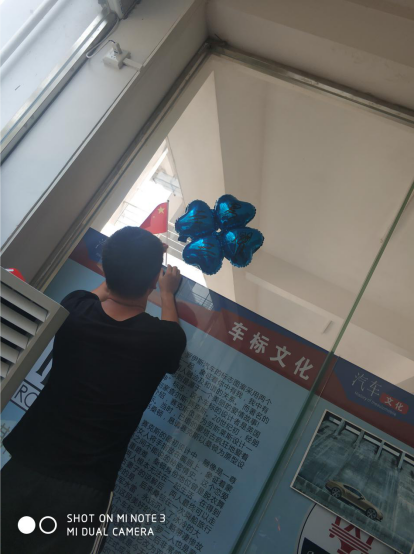我们在4月19号下午紧锣密鼓的装饰教室,独具匠心的班级布置给予了每个同学展示自己风采的平台和机遇,同时也充分展示了同学们的智慧、审美情趣和艺术才华,浸透出平等、宽容、 激励、催人奋进的班级文化,创造出了各自不同的班级文化特色和学习文化氛围。