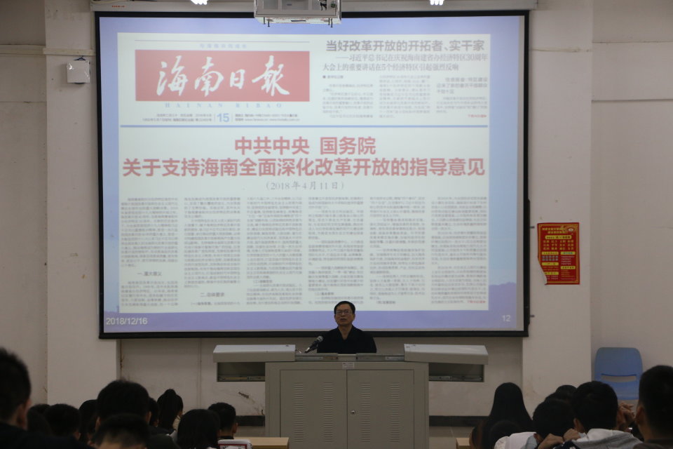 2018年12月16日晚(青年媒体中心报道 曾文倩)讯,为加强同学们对建设海南新时代,发展海南自由港意识。公司在二教102、408教室分别展开宣讲,由