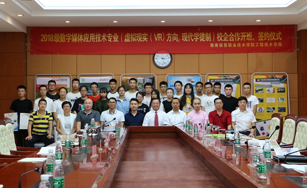 经过双方友好协商10月18日下午太阳成集团tyc151cc校企合作战略签约仪式暨2018级数字媒体应用技术专业(虚拟现实(VR)方向,现代学徒制)校企合作开班仪式隆重举行。太阳成集团tyc151cc校级领导、教务处、宣传统战部、工程技术公司、学徒制班员工、上海曼恒数字技术股份有限公司、广州口可口可软件科技有限公司等单位和相关人员参加了本次活动。