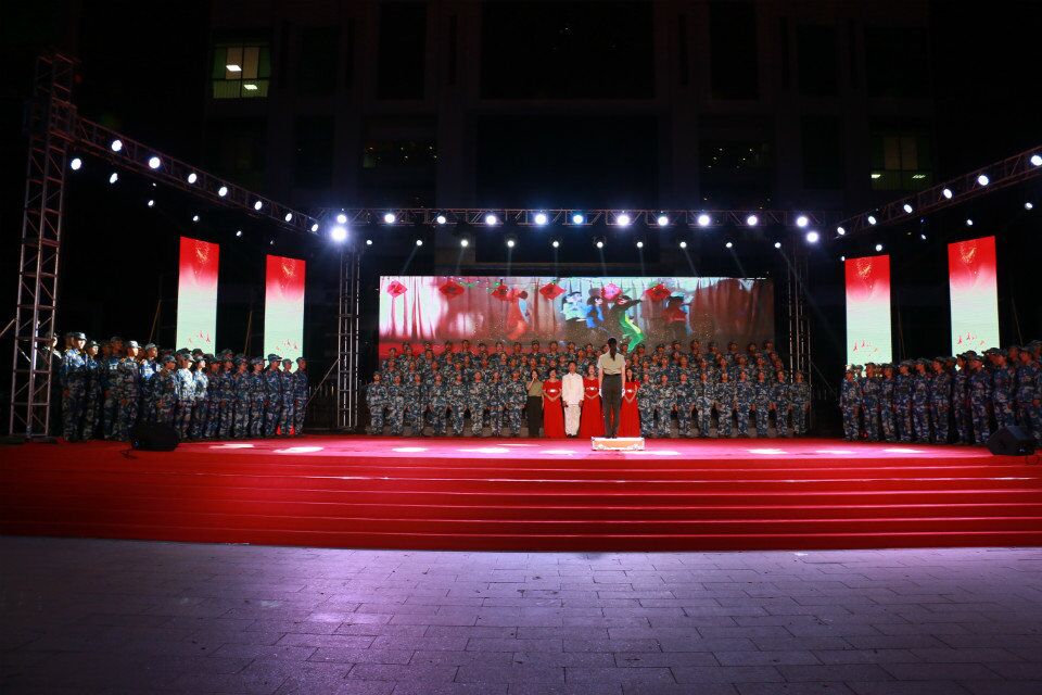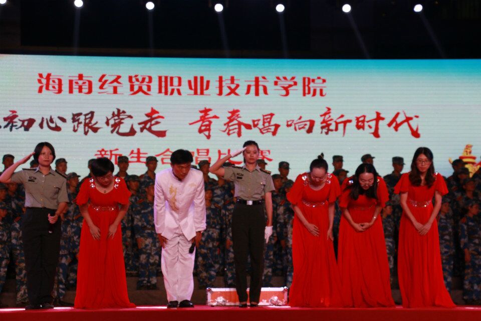 在比赛会场,有6支队伍代表各院系参加比赛,在经贸广场为全校师生上演了精彩的合唱演出。个队伍都准备充分、创意十足,选择的歌曲类型丰富,各有特色。由校级团学干部合唱《当我和你们一样》拉开比赛的序幕。第一个出场合唱比赛的是工程技术公司18级新生,共同演唱的有工程技术公司党总支副书记陈亚芳,学工办主任梁其钰,大一辅导员代晓明、郭蓉佳及张晋霞老师等合唱了《我爱你,中国!大联唱》。他们神情从容自信,歌声和谐悠扬,给全体师生带来了视听盛宴。接下来的合唱团都给我们带来了不一样的惊喜。最后,由旅游管理公司合唱《强军战歌》《万泉河水清又清》精彩落幕。