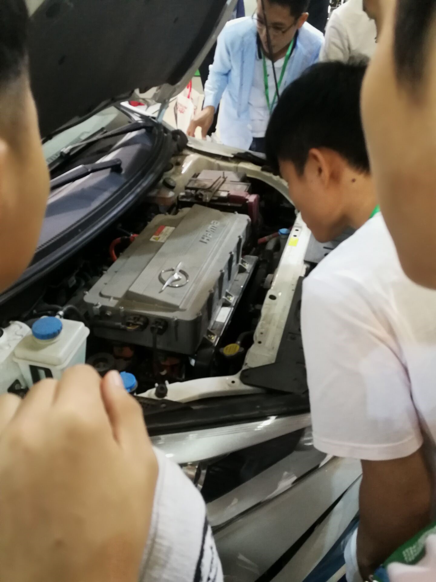 公司同学有序进入会场,认真聆听了主办方领导及相关企业人员讲话,然后在老师的带领下了解了新能源汽车先进的技术以及汽车构造等知识。