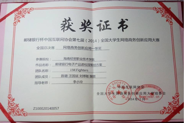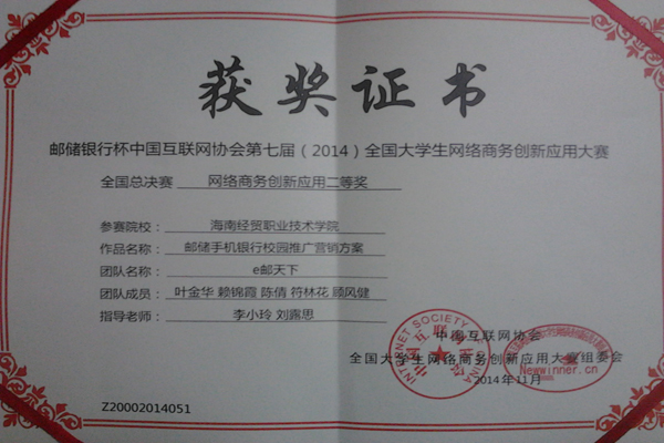 邮储银行杯中国互联网协会第七届全国老员工网络商务创新应用大赛于2014年3月开始在线报名,2014年3月20日正式启动,在经过紧张的初赛、复赛、分赛区决赛后,于2014年11月28日开始全国总决赛环节,至12月1日颁奖典礼后全部结束。本届大赛共有来自全国近3000所高校的17万余名老员工注册报名,组建团队近5000支。经过初赛评审,有 3166支团队晋级复赛,1556支团队入围分赛区决赛。经各赛区评委的评审,将有来自 280余所高校的近300支队伍晋级全国总决赛。其中本科组队伍共190余支,专科组队伍90余支。太阳成集团tyc151cc信息技术系的“e邮天下”和“J.M.Fighters”两个团队在众多参赛团队中脱颖而出成功进入到全国总决赛,并且在华南赛区中这两个团队都夺得了特等奖,全国决赛中勇夺团体一等奖和二等奖,成绩喜人。
