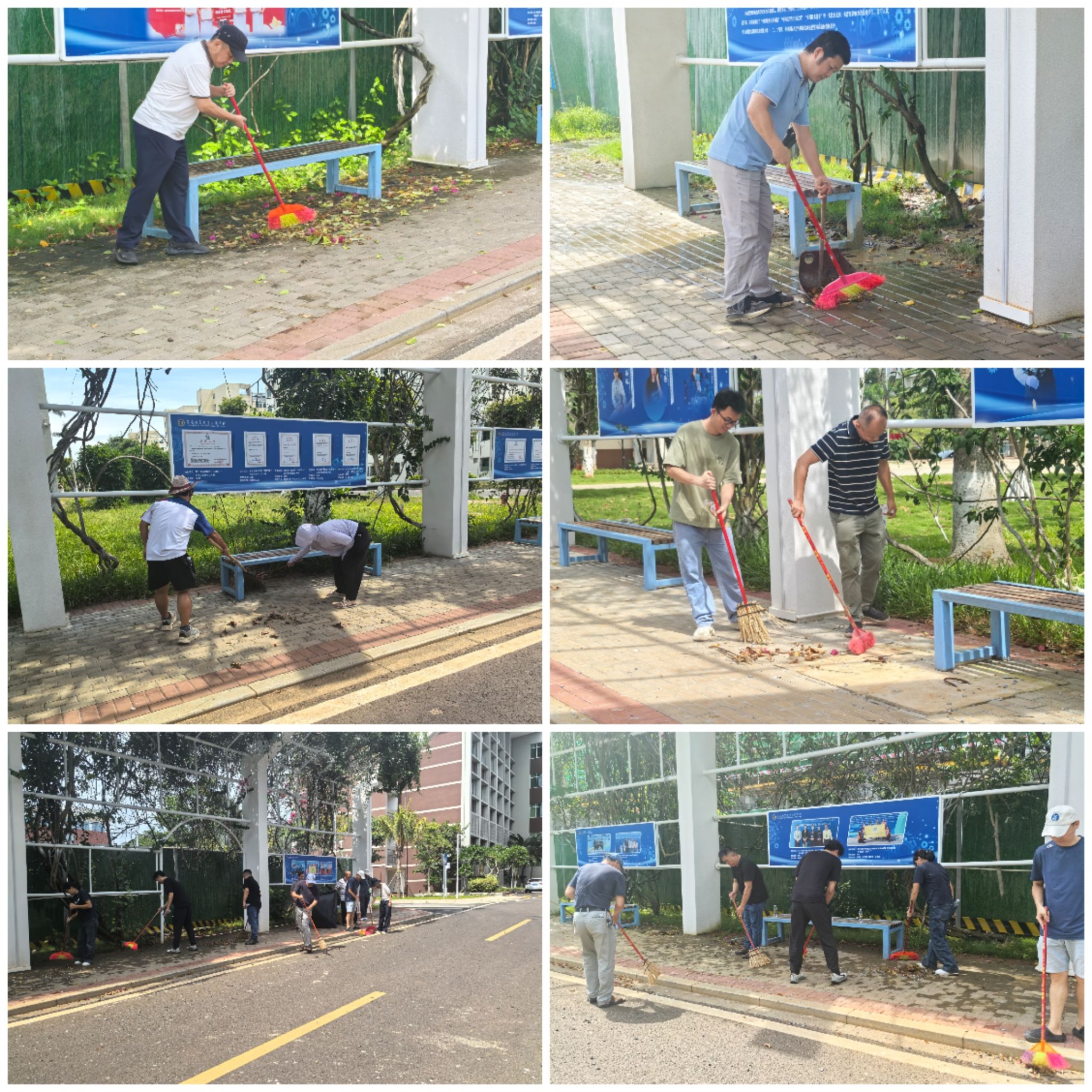 活动现场分工有序,教职工们专注地清扫着路面及绿化带里的落叶,仔细清理每一处卫生死角,每个人都干劲十足,用实际行动为校园洁净贡献力量。经过一番辛勤劳动,负责区域的落叶被清理得干干净净,环境焕然一新。活动最后,全体参与教职工合影留念,定格下这一充满意义的瞬间。