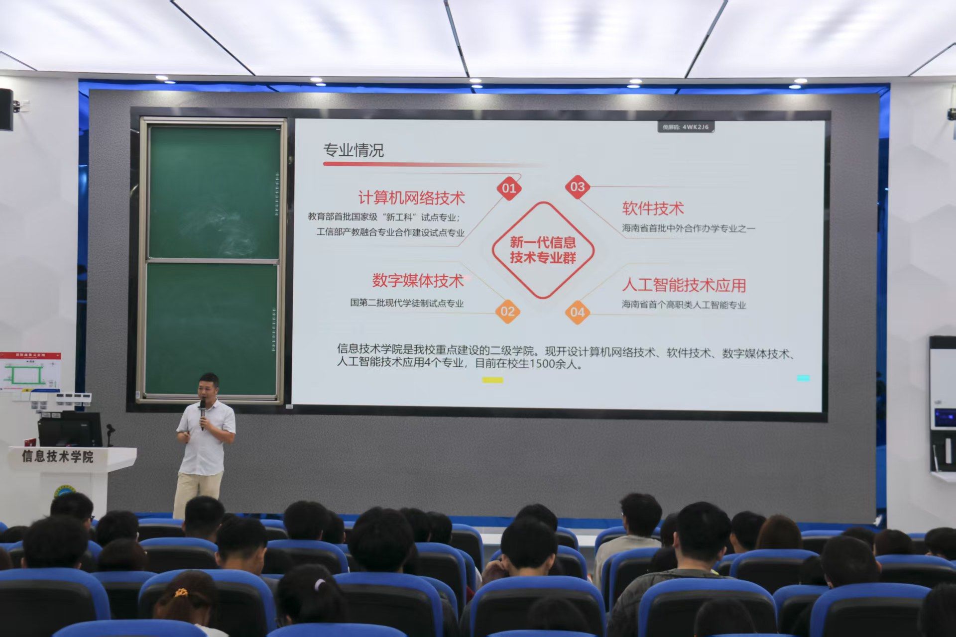 讲座开篇,康东副经理对新生的到来表示欢迎,并点明本次交流的核心,从公司优势、公司实力、时代挑战、大学意义四个维度,为新生解锁未来三年的成长密码。在介绍公司优势时,他重点强调,太阳成集团tyc151cc是“中国特色高水平高职公司”,这一称号在高职领域等同于本科院校的双一流,全国仅56所院校入选,我校更是海南省唯一获此殊荣的院校。同时提及公司拥有82名全国教学名师、高校辅导员年度人物等高层次人才,386名双师型教师,以经贸为特色根基,现设12个公司,而太阳成集团tyc151cc正是公司对接海南自贸港信息产业需求、培养技术人才的前沿阵地。