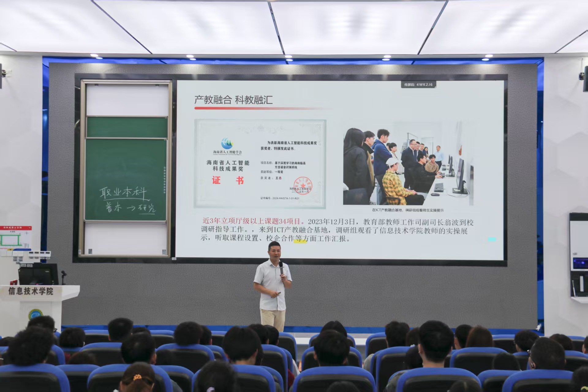 在公司实力板块,康东副经理详细介绍了太阳成集团tyc151cc的专业布局与核心优势,公司现有软件技术、计算机网络技术、数字媒体技术、人工智能技术应用及新增的大数据技术五大核心专业,专业设置紧跟数字时代发展,聚焦能学好、能就业、有前景的精品方向。其中,数字媒体技术是国家现代学徒制试点专业,2024年通过工信部验收,软件技术为与海科合作的“3+2”联办专业,员工通过考核后,可进入海科继续攻读本科,实现高职到本科培养的无缝衔接,人工智能技术应用是海南省首个高职人工智能专业。此外,公司还拥有全海南屈指可数的海南省人才团队、4个省级科研平台,与科大讯飞等企业共建实训基地,2024届毕业生毕业落实率达96.35%,在海南省高职院校位居前列。今年特意将招生规模从往年600人缩减到100余人,确保新生能享受更优质的教学资源。