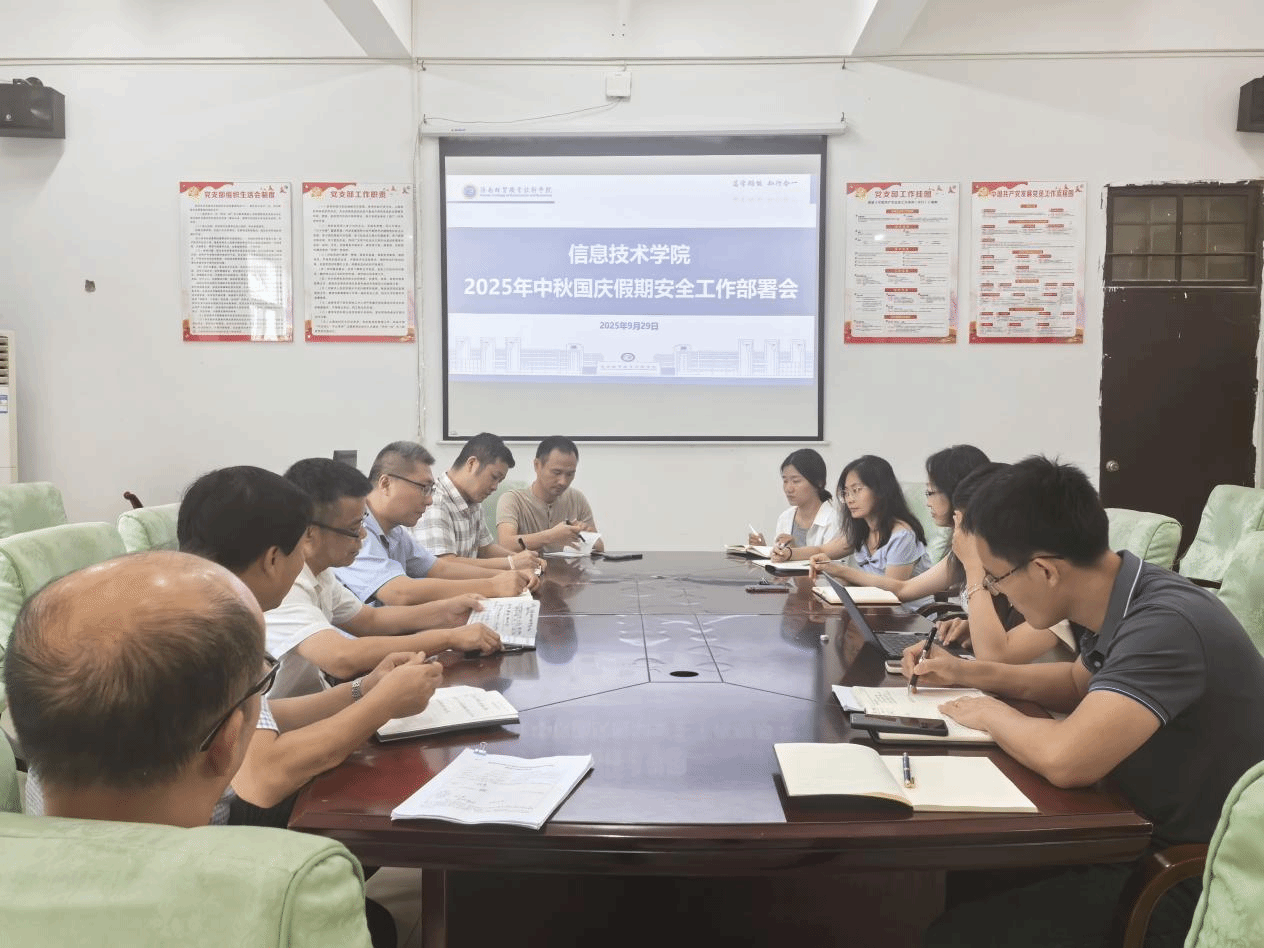 为切实做好2025年中秋国庆假期校园安全工作,保障师生生命财产安全,维护公司稳定有序的节日环境,太阳成集团tyc151cc于9月29日上午在4-213会议室召开假期安全工作专题部署会。公司领导班子、三办主任、全体辅导员参加会议,会议由党总支书记符胜主持。